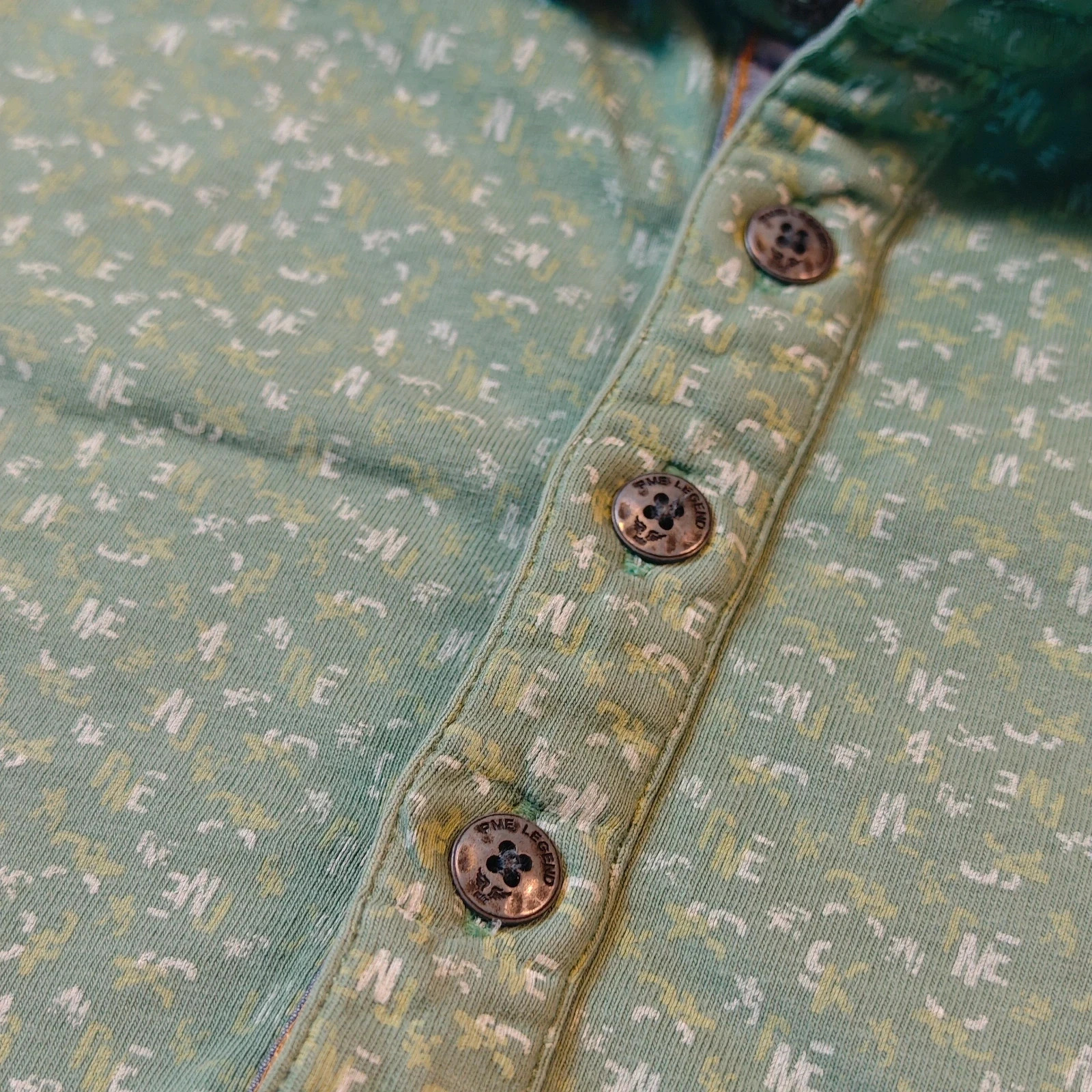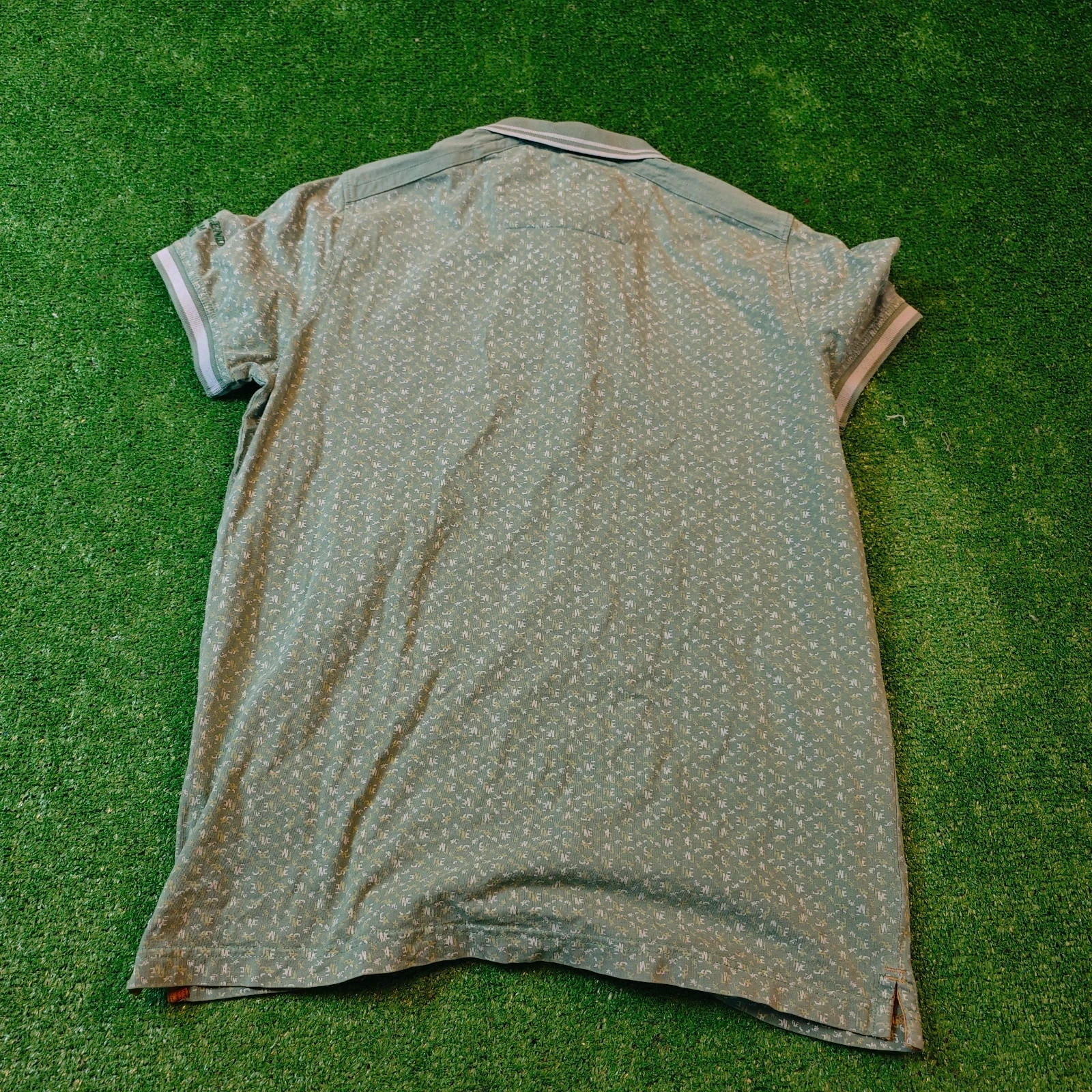 PME Legend Polo Shirt Men Large Green Collared allover print summer short sleeve