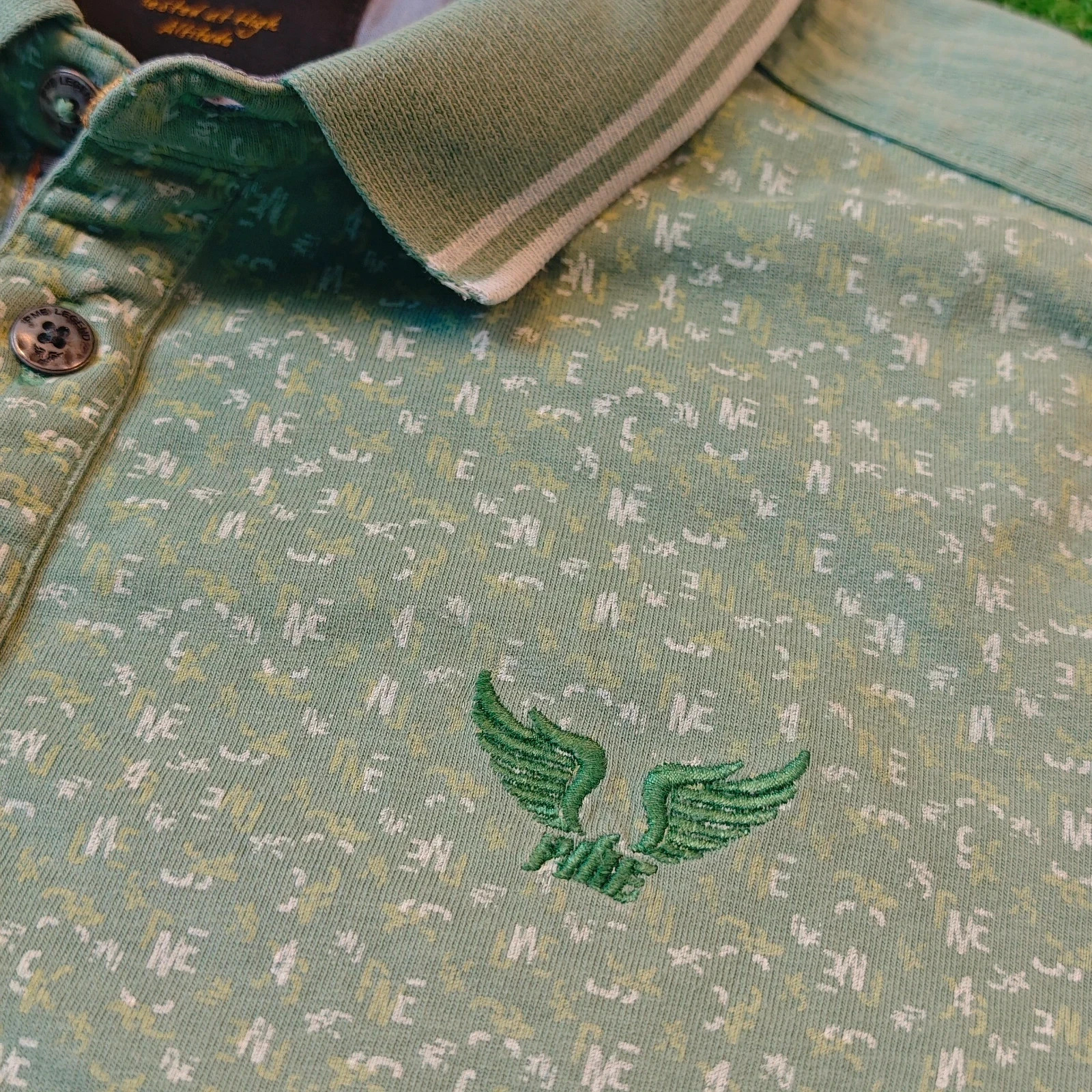 как выглядит PME Legend Polo Shirt Men Large Green Collared allover print summer short sleeve фото
