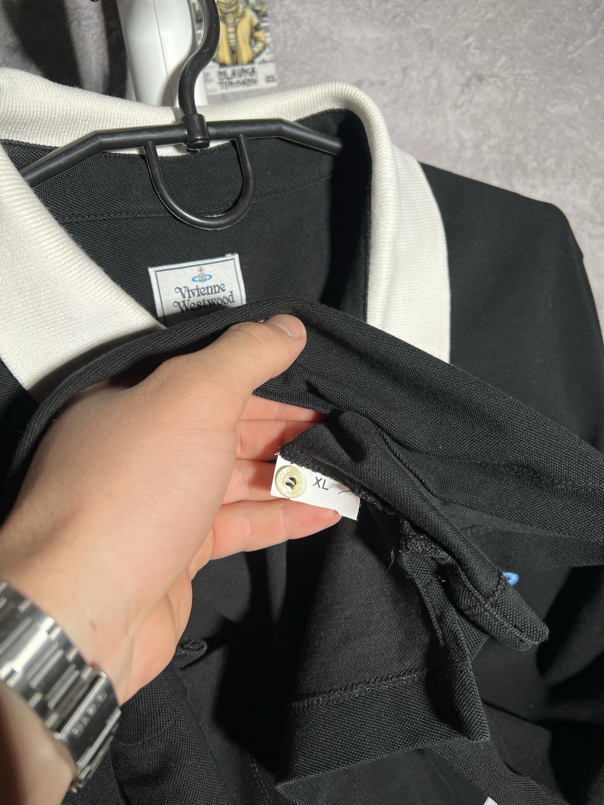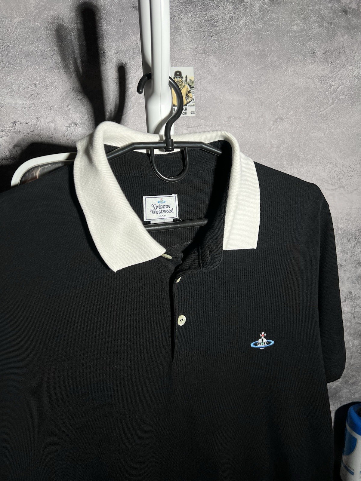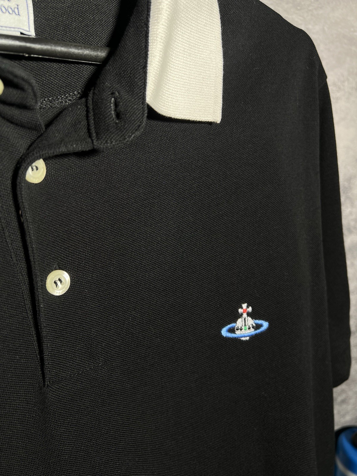как выглядит Vivienne Westwood Polo Shirt XL Black White Collar Embroidered Orb Logo Mens фото