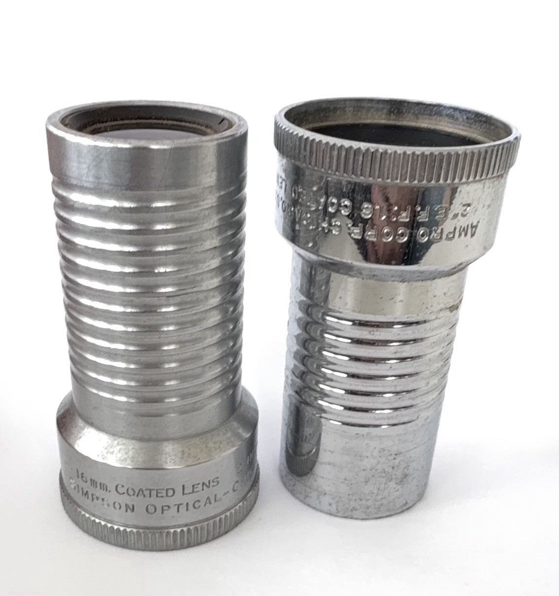 Lot 2 Coated Lenses Simpson Optical Lens 16mm 2 Inch F/1.6, Ampro 2 E.F.F: 1.6