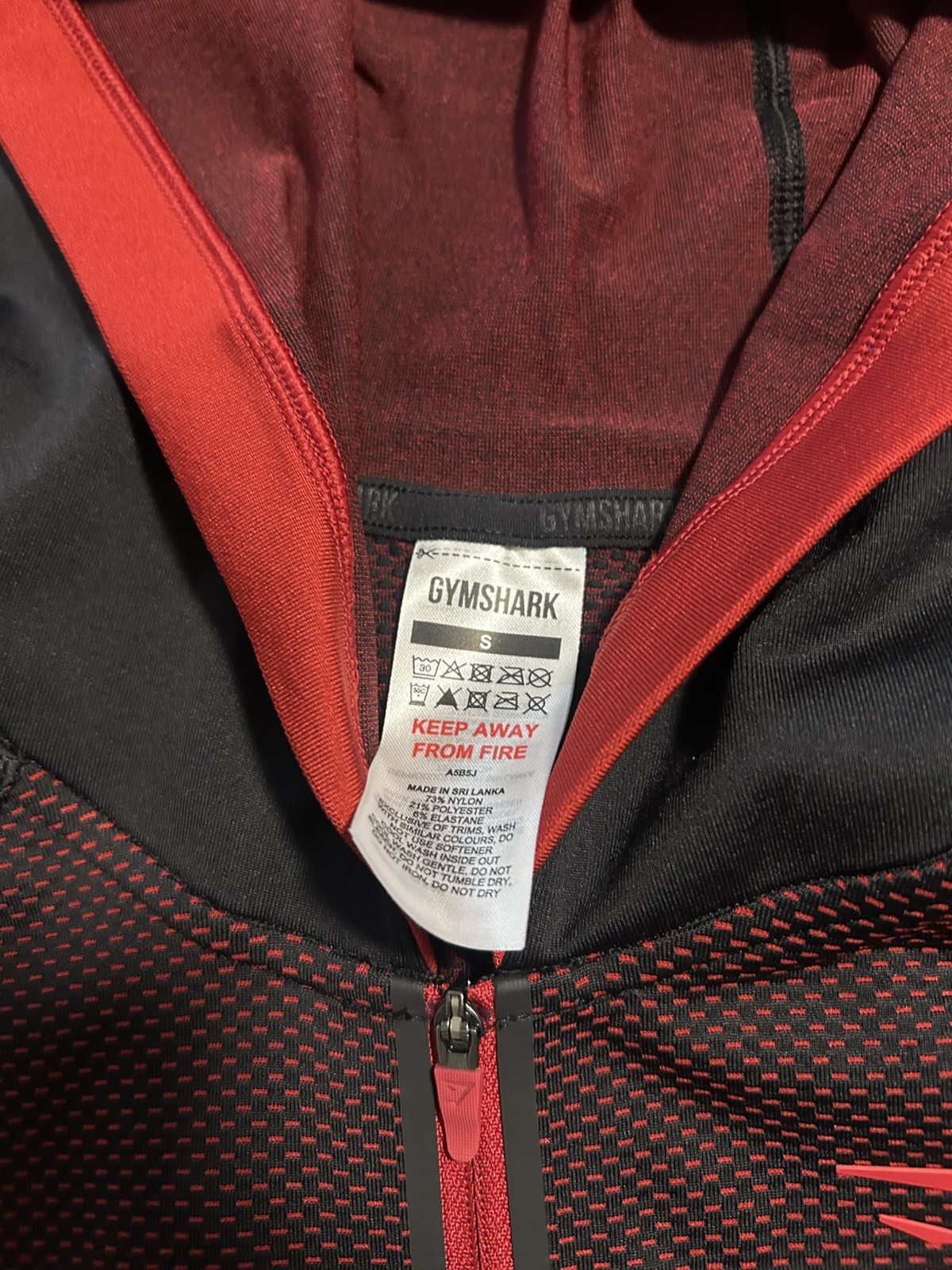 как выглядит Gymshark Onyx 5.0 Seamless 1/4 Zip Hooded Hoodie Black Carmine Red S фото