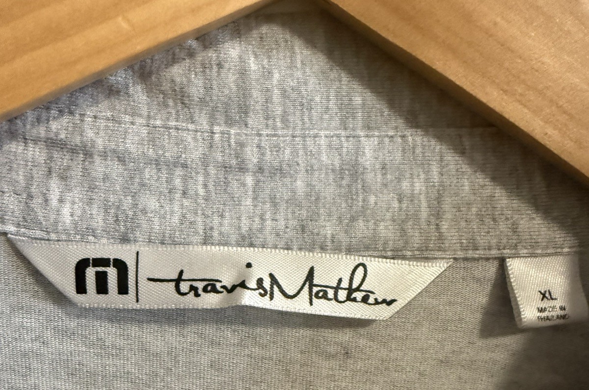 как выглядит Travis Mathew Polo Shirt Mens XL Gray Striped Lightweight Golf Shirt EUC фото