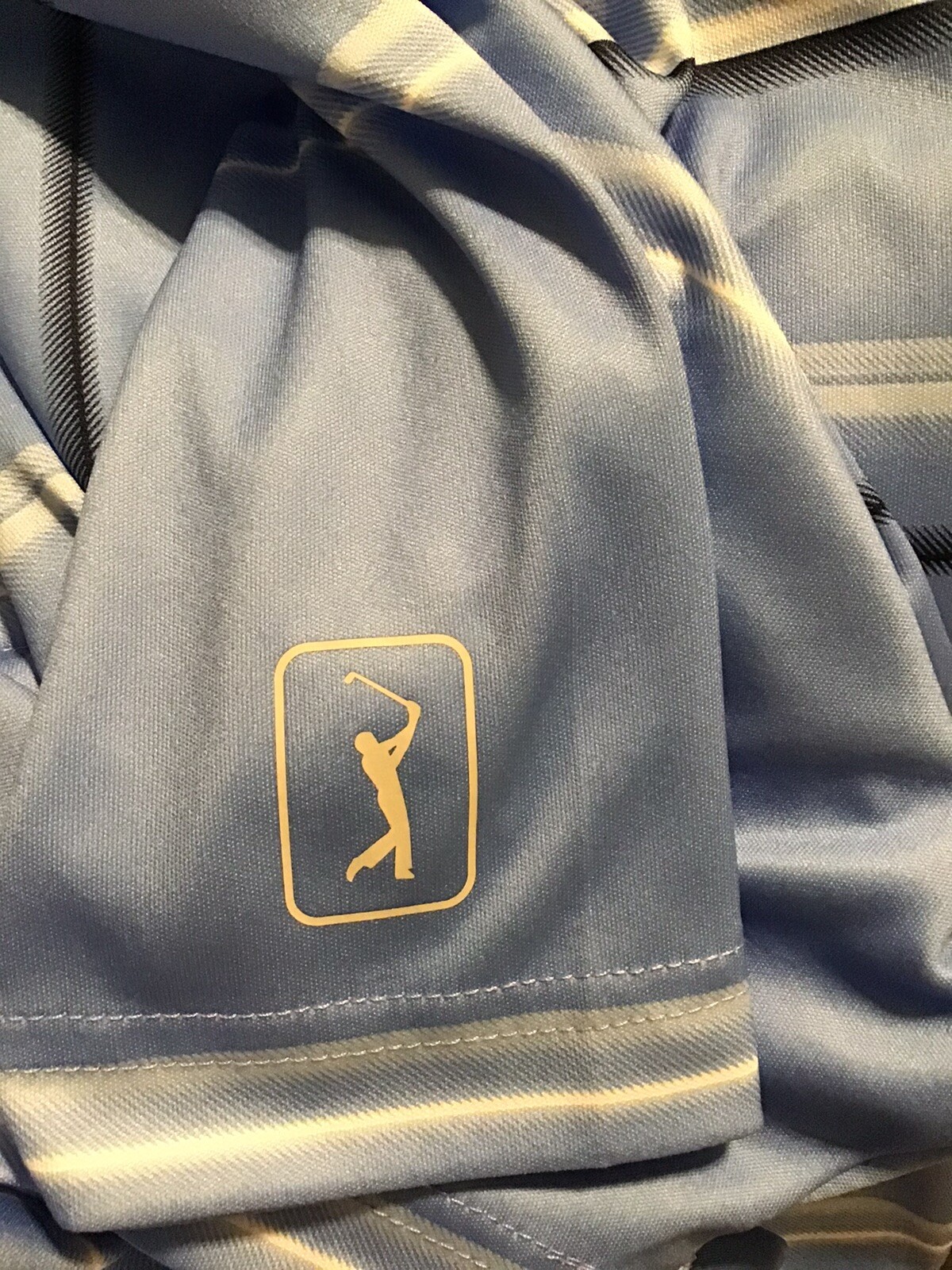 как выглядит PGA Tour Golf Polo Shirt Men s XL Blue White Stripe Short Sleeve Shirt фото