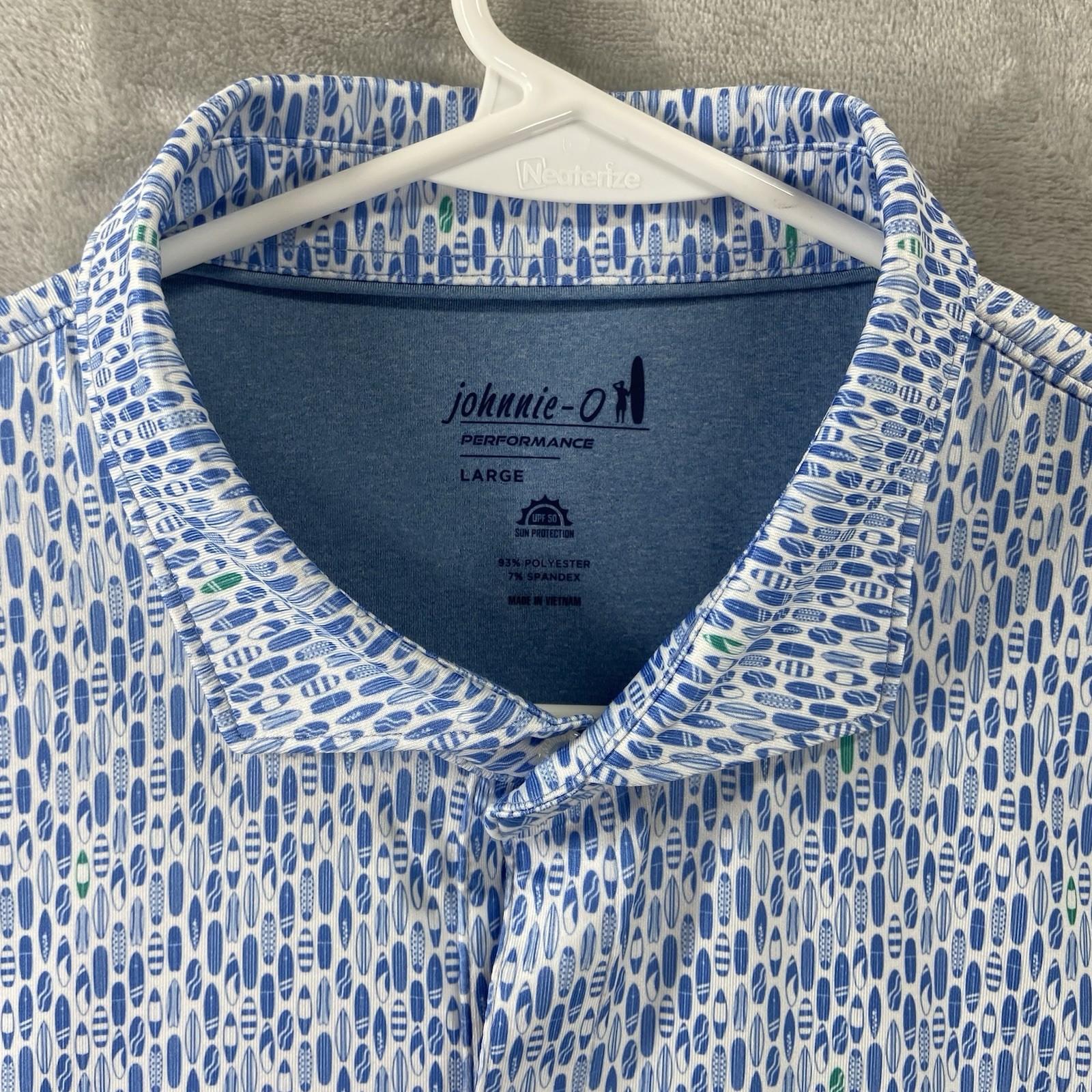как выглядит Johnnie-O Shirt mens Large Polo Short Sleeve UPF Performance Surfboard All Over фото