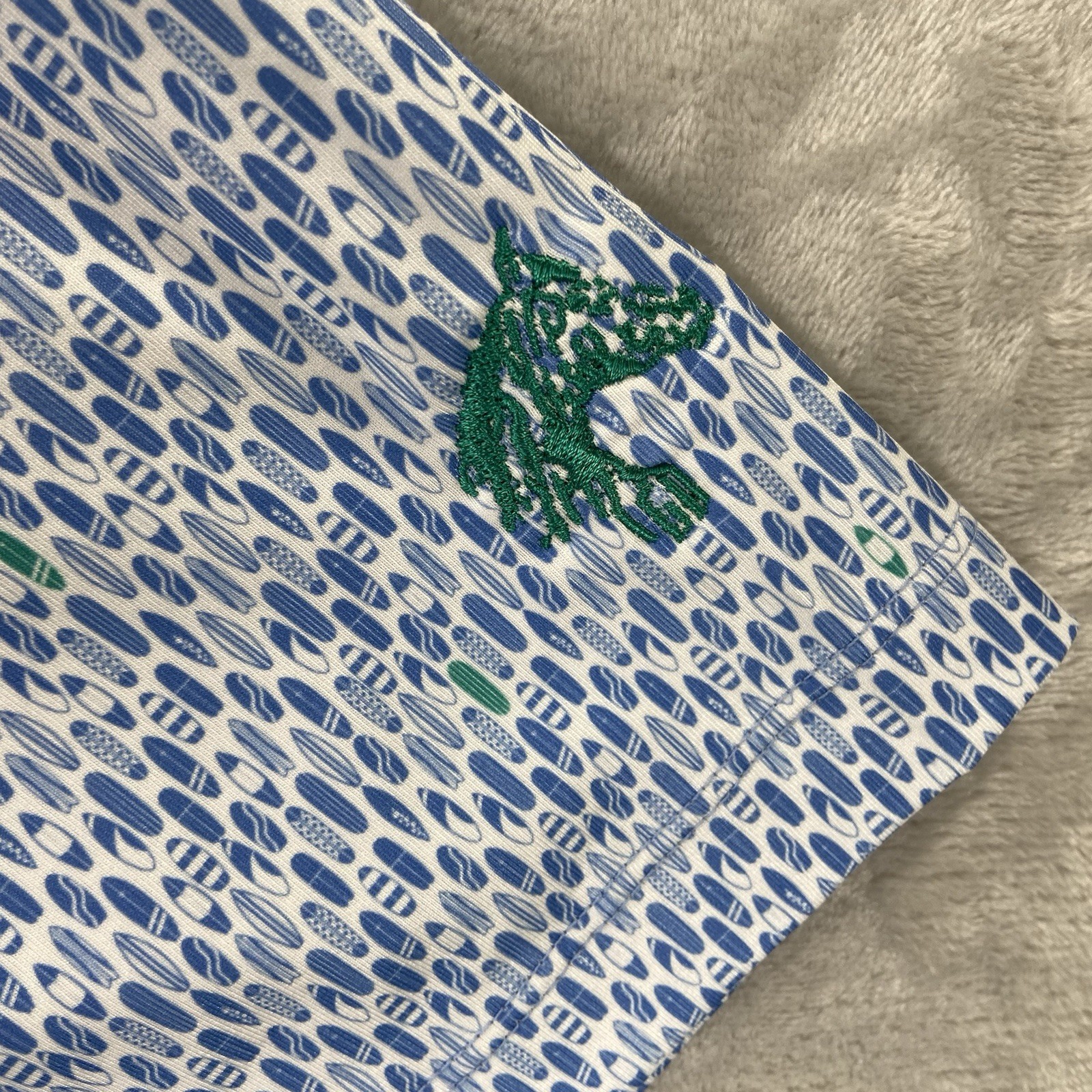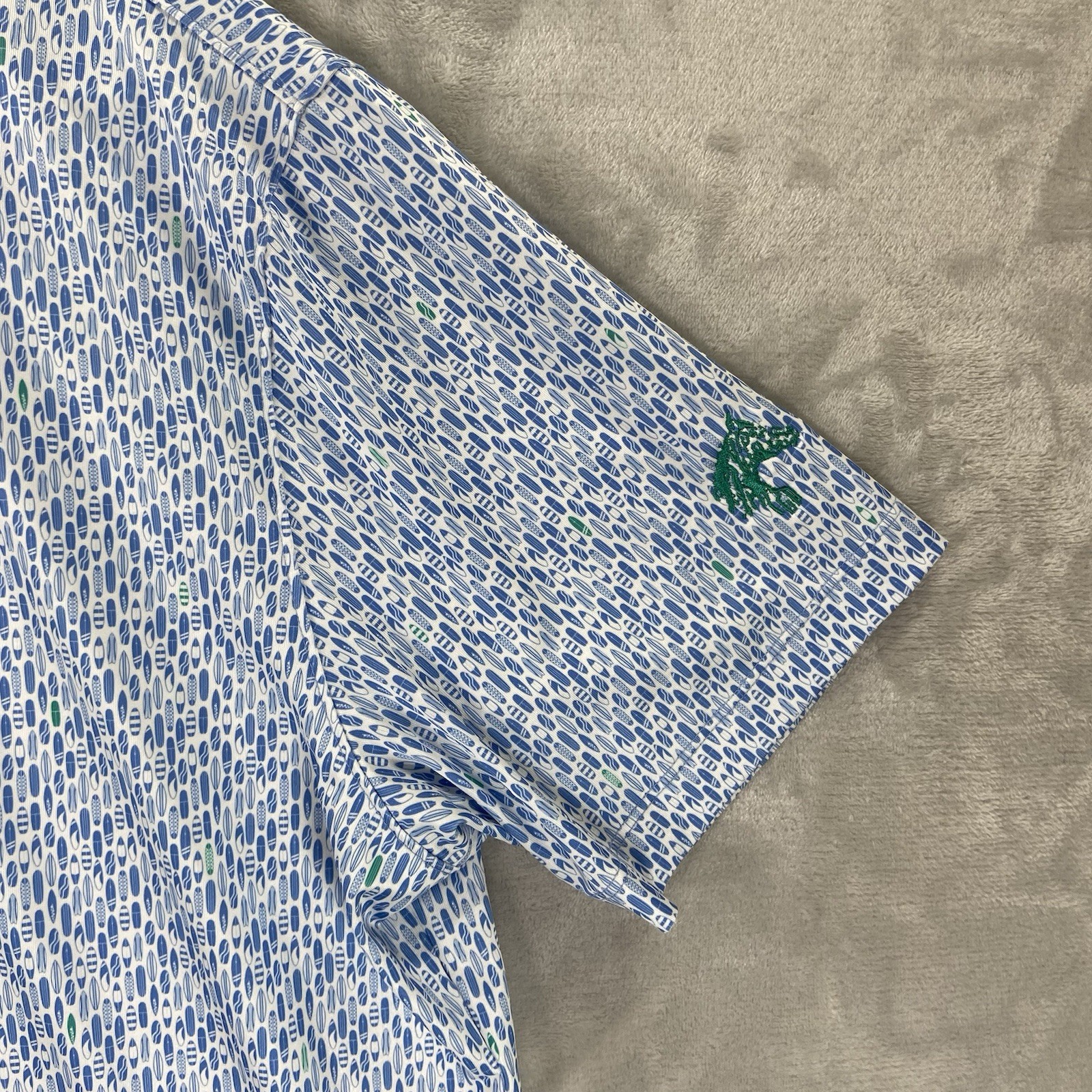 Johnnie-O Shirt men's Large Polo Short Sleeve UPF Performance Surfboard All Over