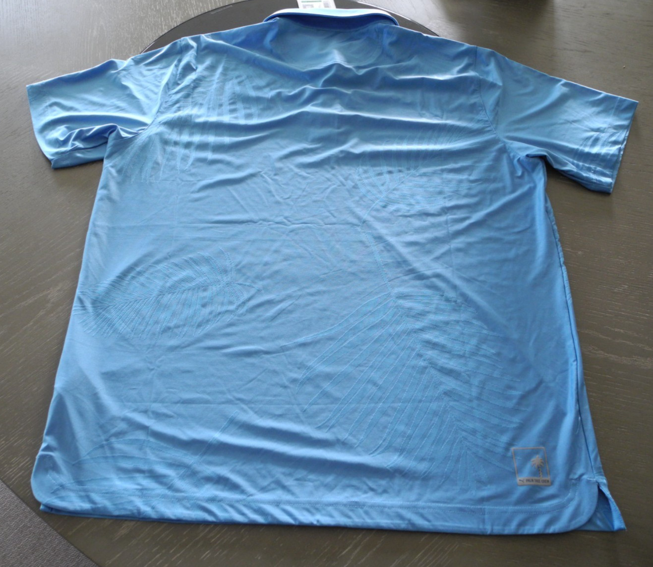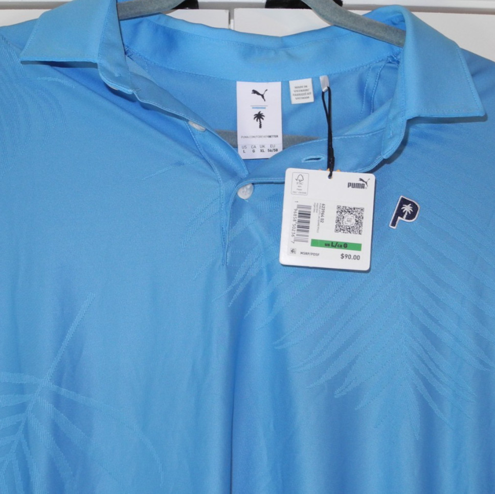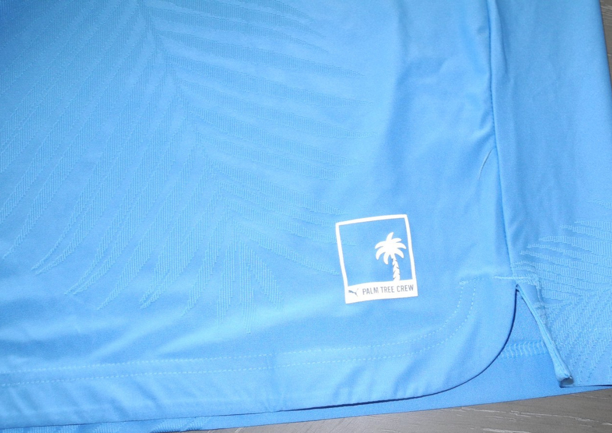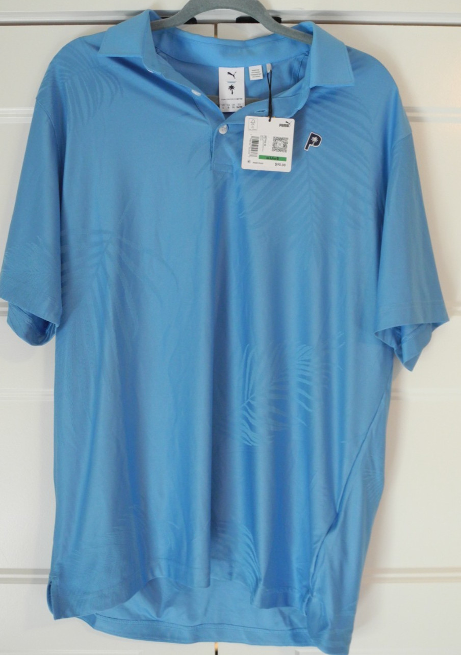 как выглядит PUMA X Palm Tree Crew Jacquard Short Sleeve Polo Shirt Mens Blue Casual Size L фото