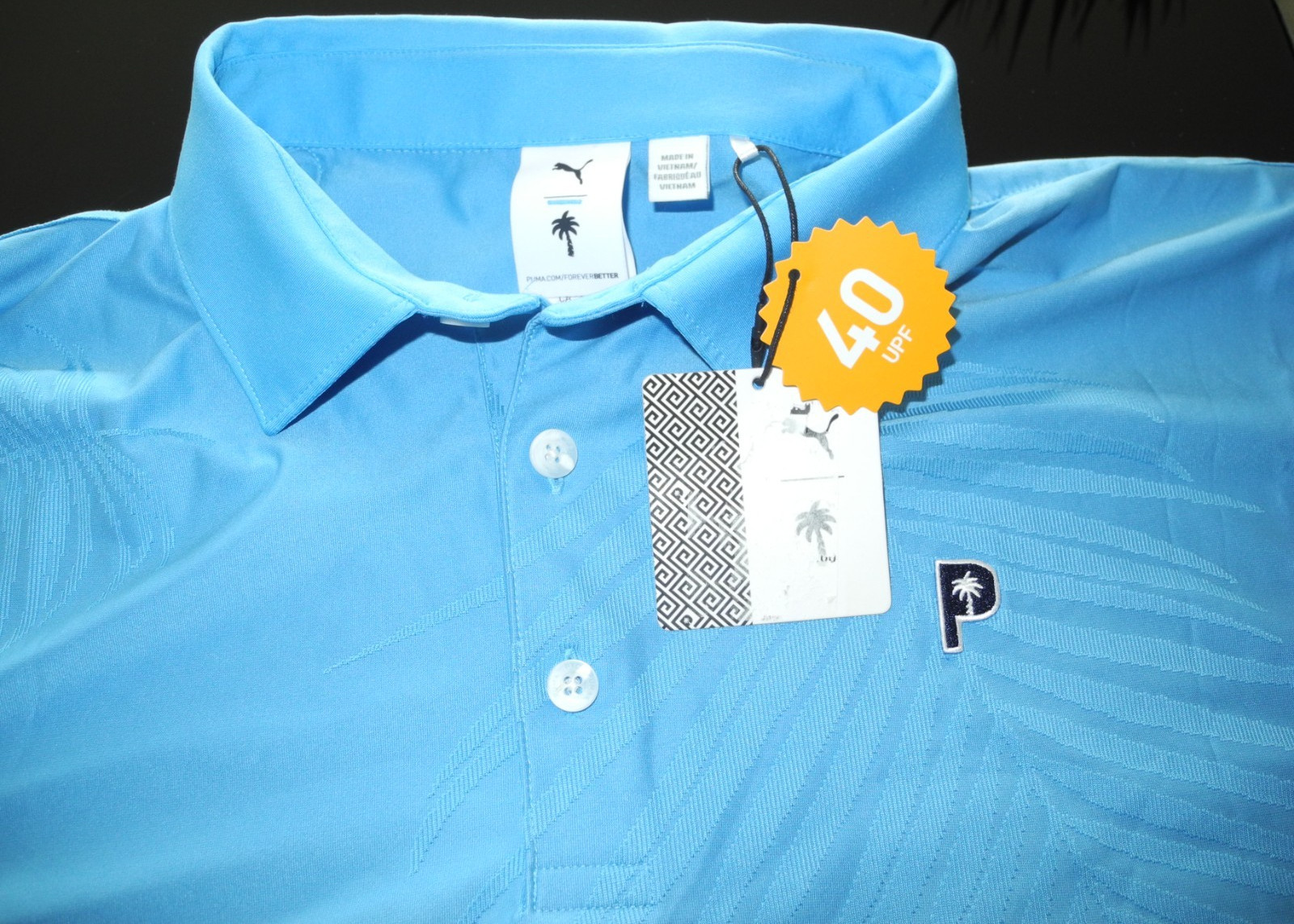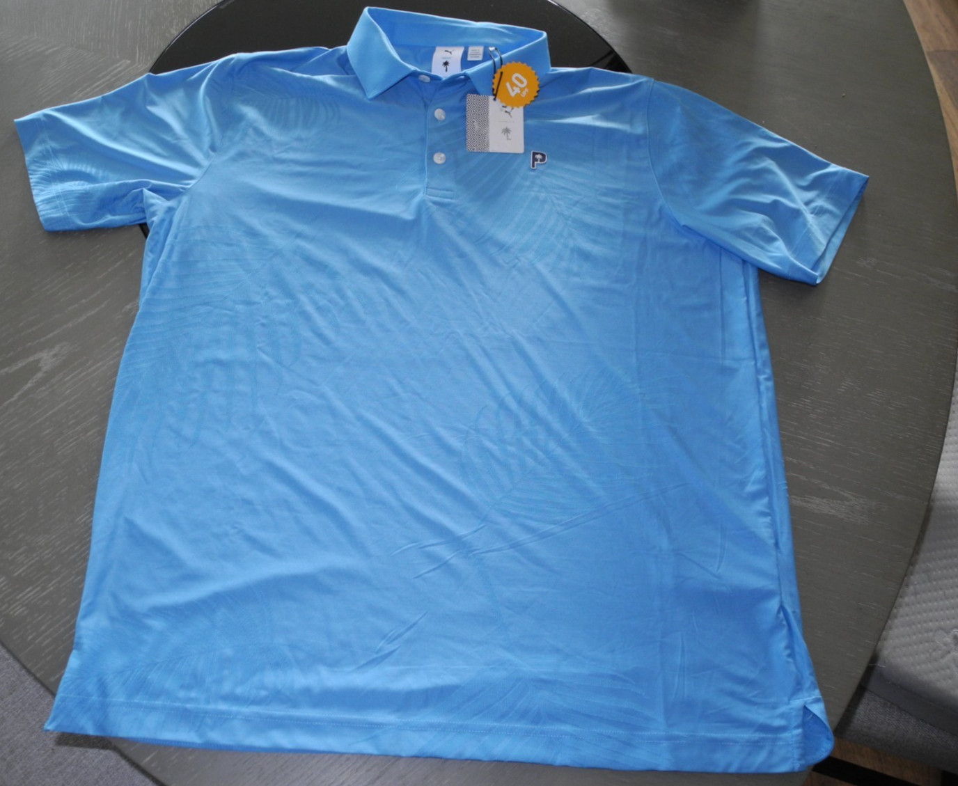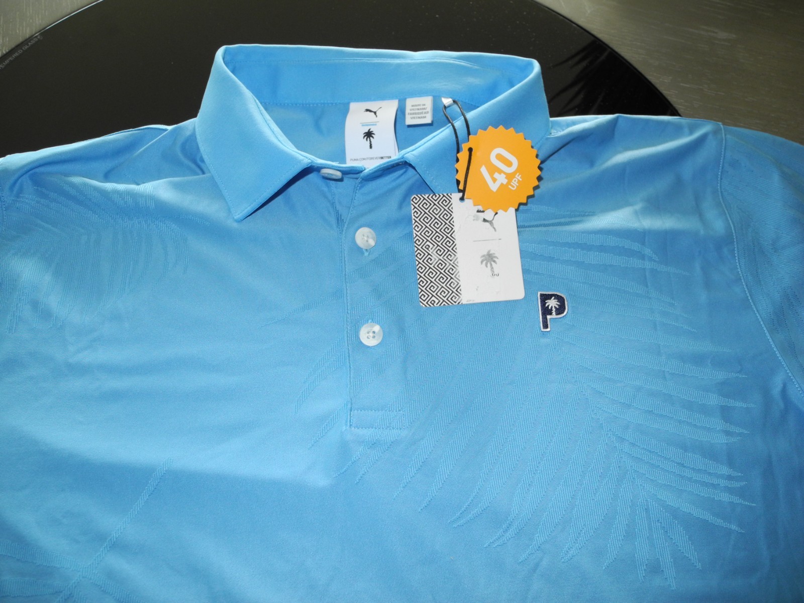 как выглядит PUMA X Palm Tree Crew Jacquard Short Sleeve Polo Shirt Mens Blue Casual Size L фото