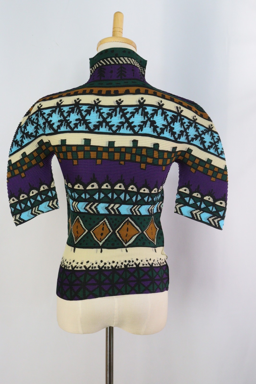 Authentic ISSEY MIYAKE me Multicolor Pleats High Neck Half Sleeve Top 070 9435