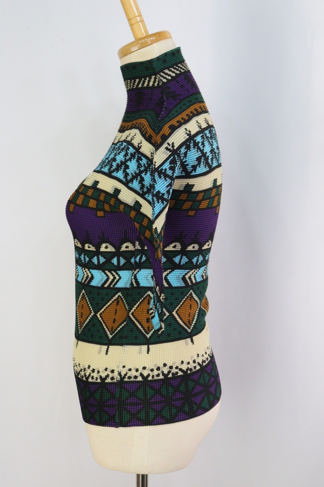 как выглядит Authentic ISSEY MIYAKE me Multicolor Pleats High Neck Half Sleeve Top 070 9435 фото