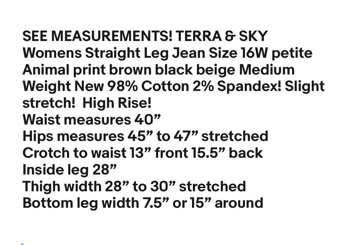 TERRA SKY Womens Straight Leg Jean Size 16W Petite Animal Print High Rise New