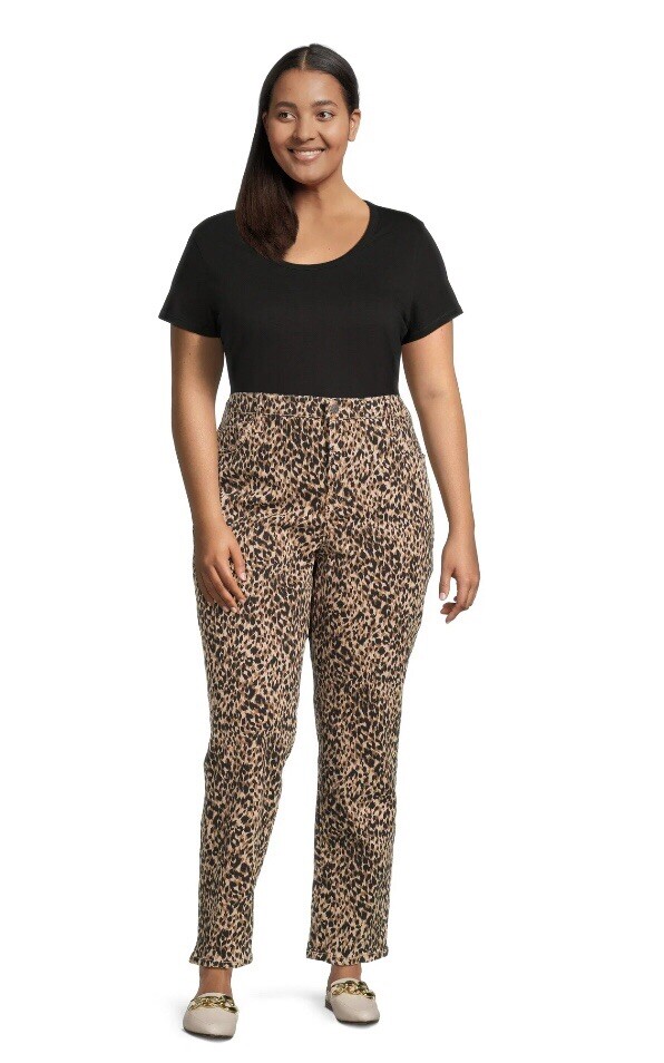 как выглядит TERRA SKY Womens Straight Leg Jean Size 16W Petite Animal Print High Rise New фото