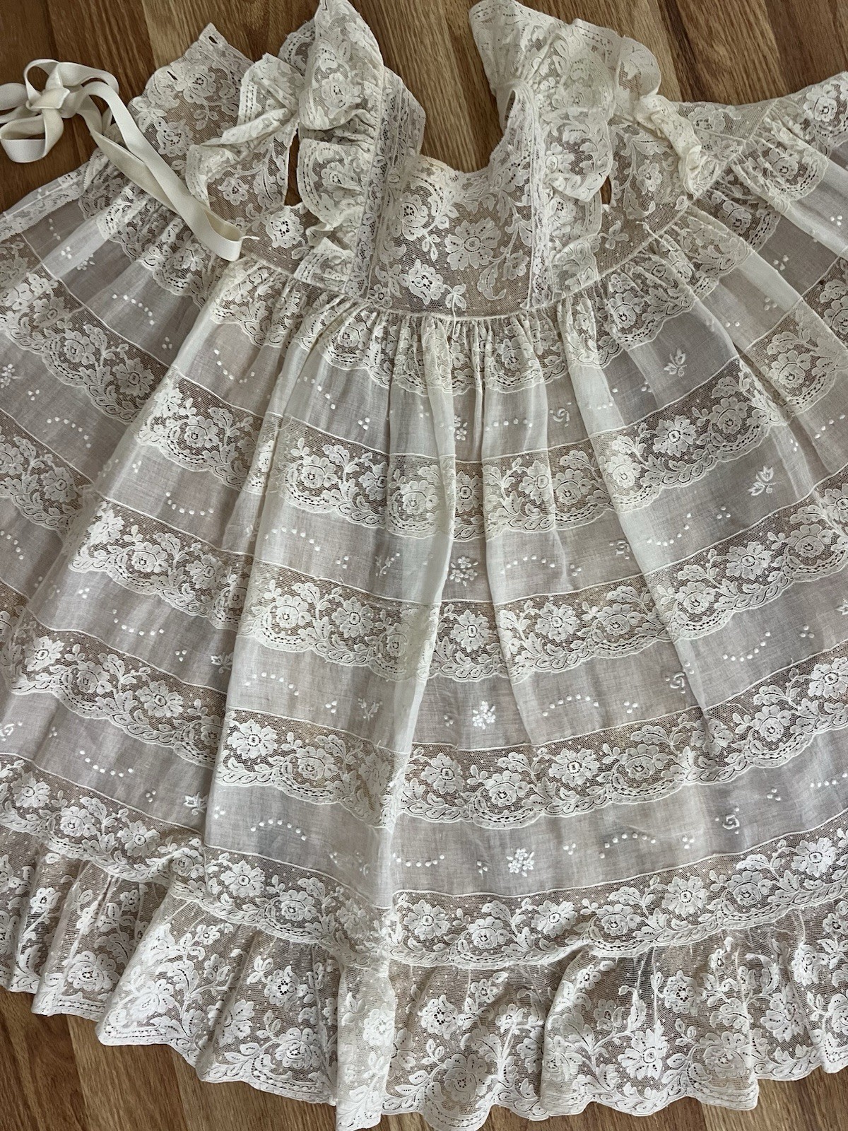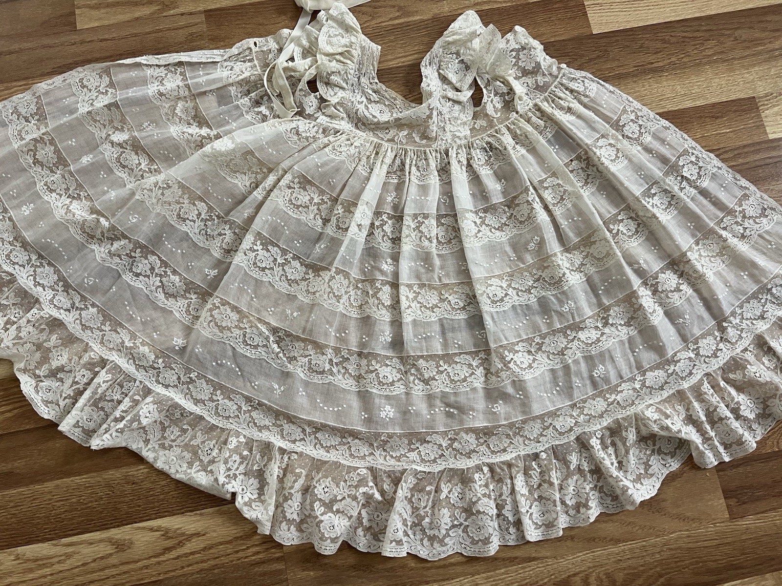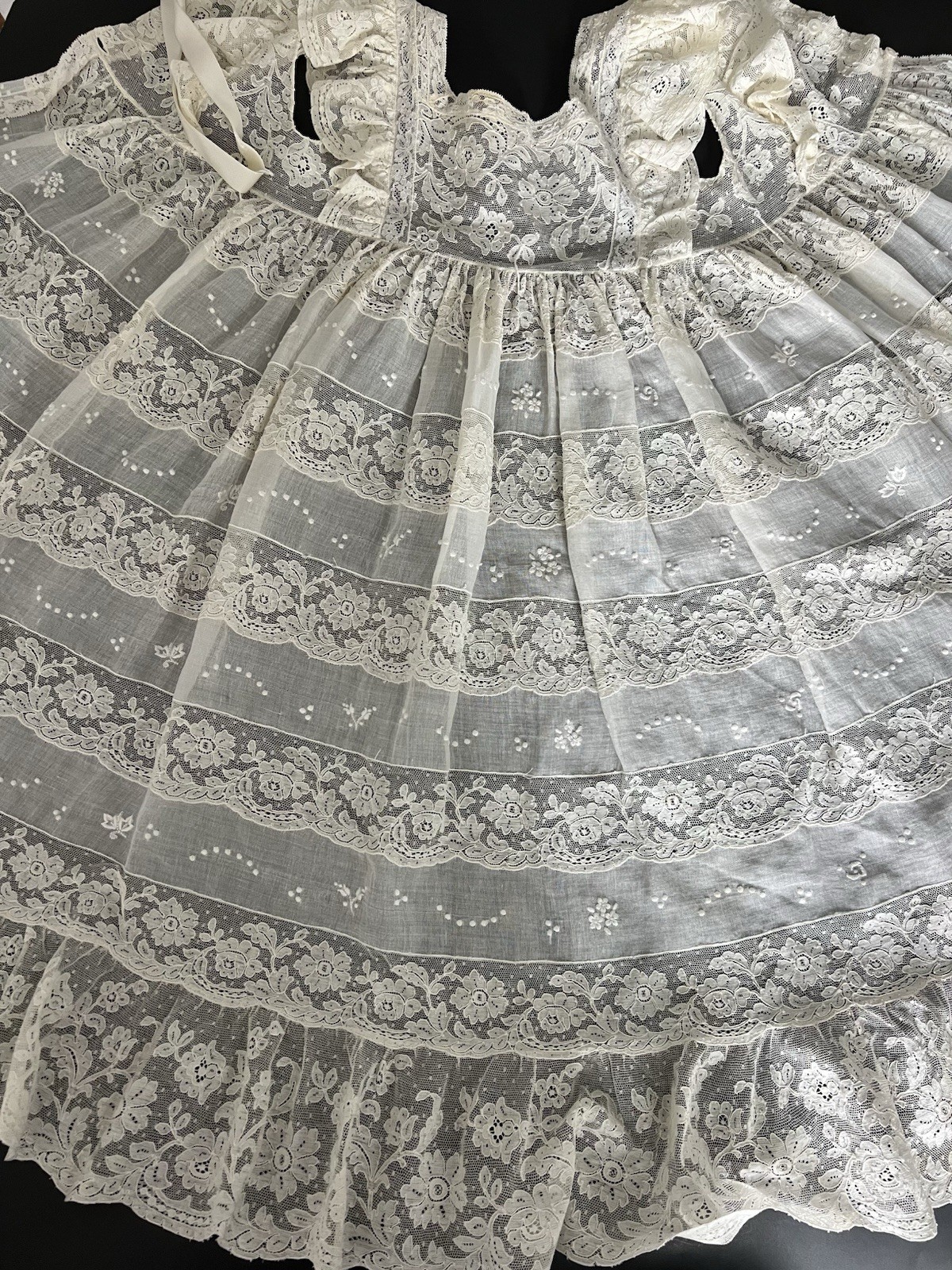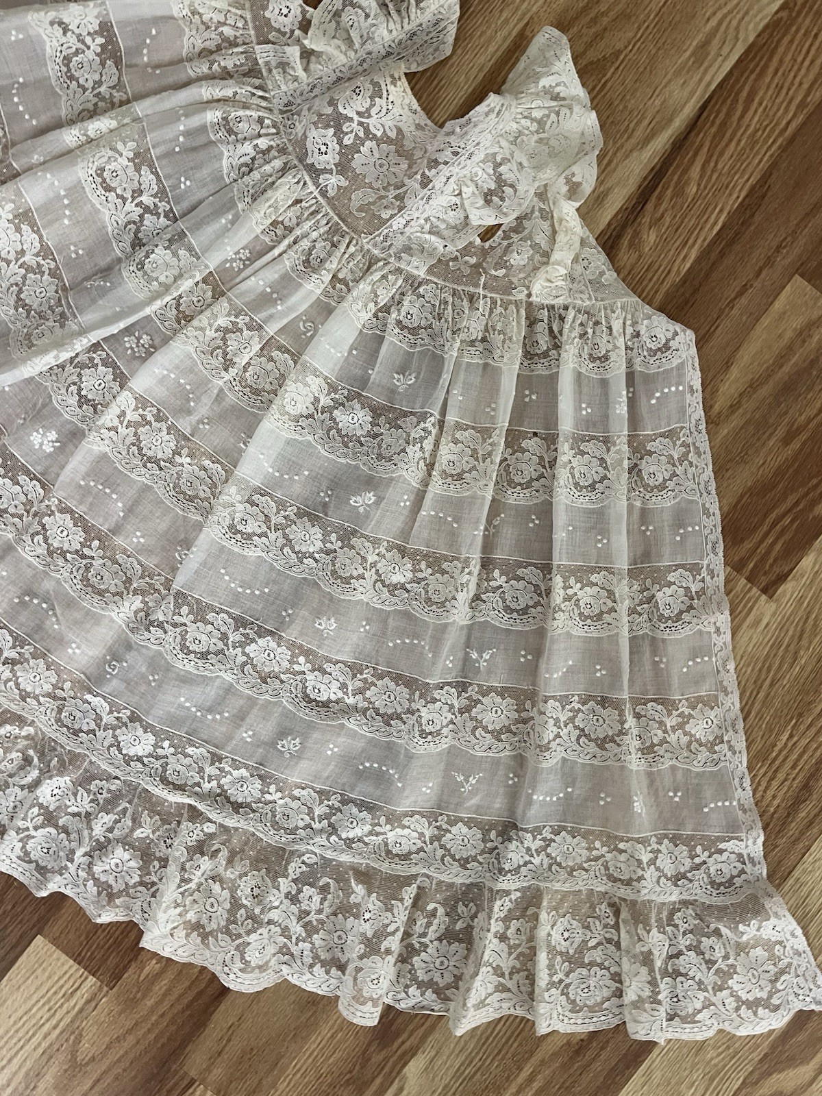 как выглядит Antique 19c Brussels Princess Lace Hand Made Tambour Christening Gown Dress EXCL фото