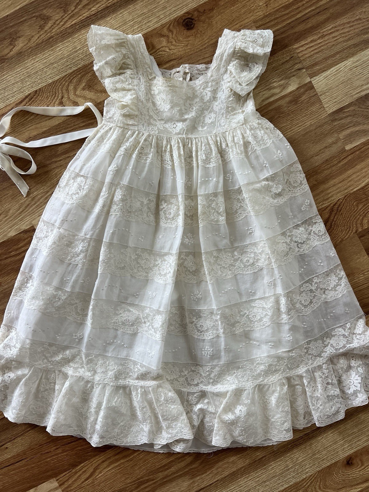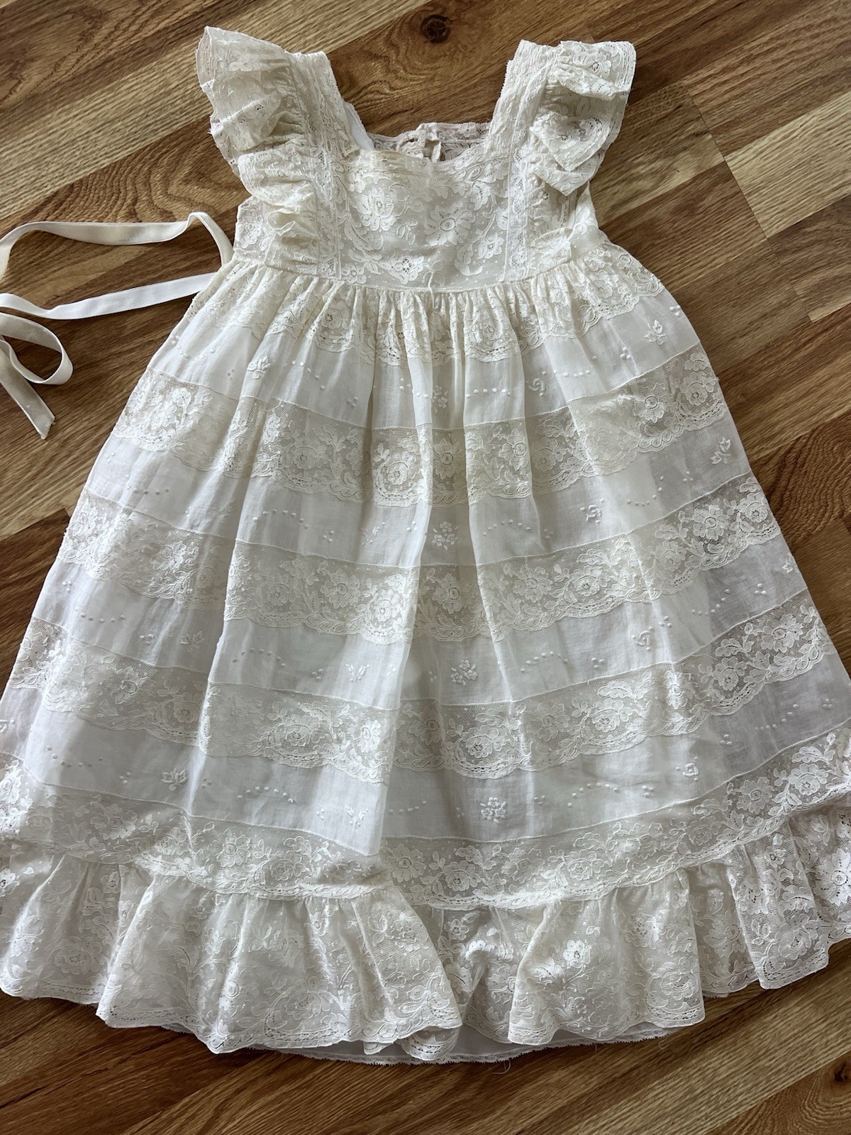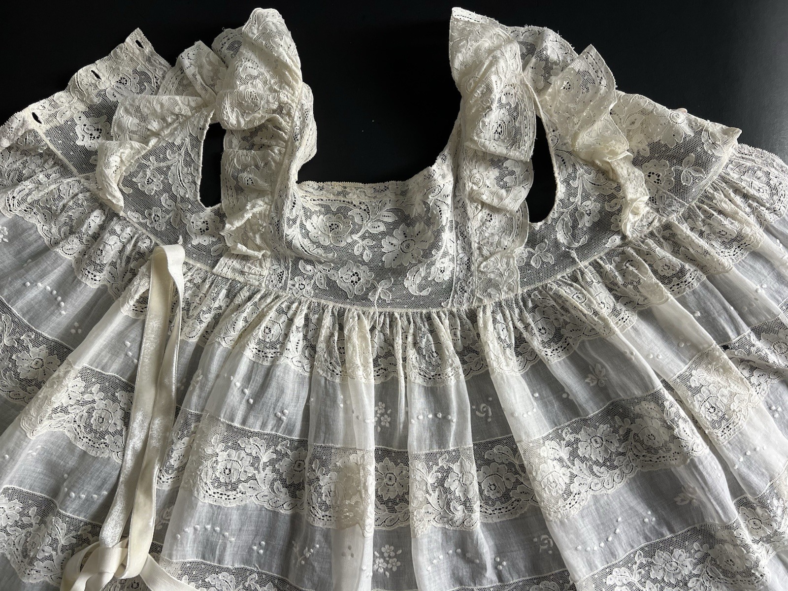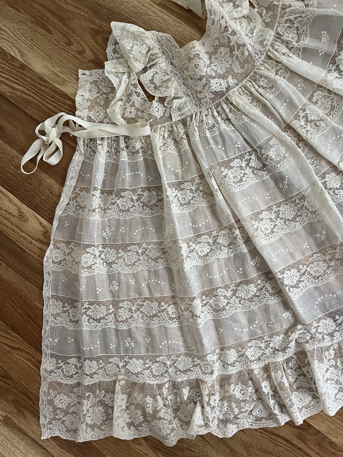 как выглядит Antique 19c Brussels Princess Lace Hand Made Tambour Christening Gown Dress EXCL фото