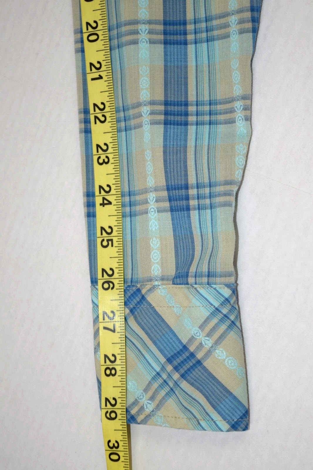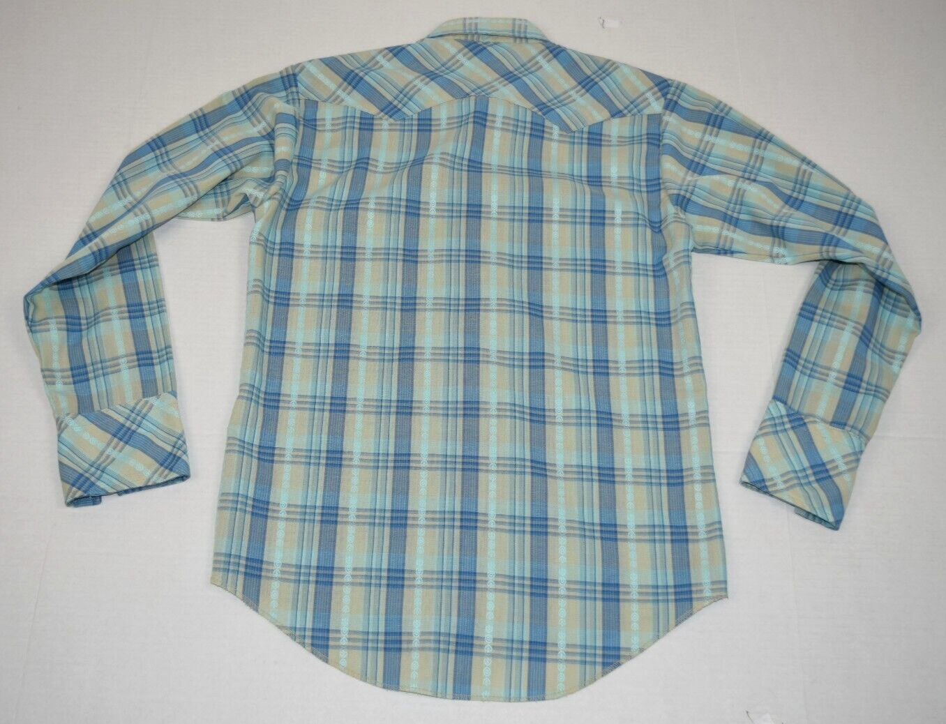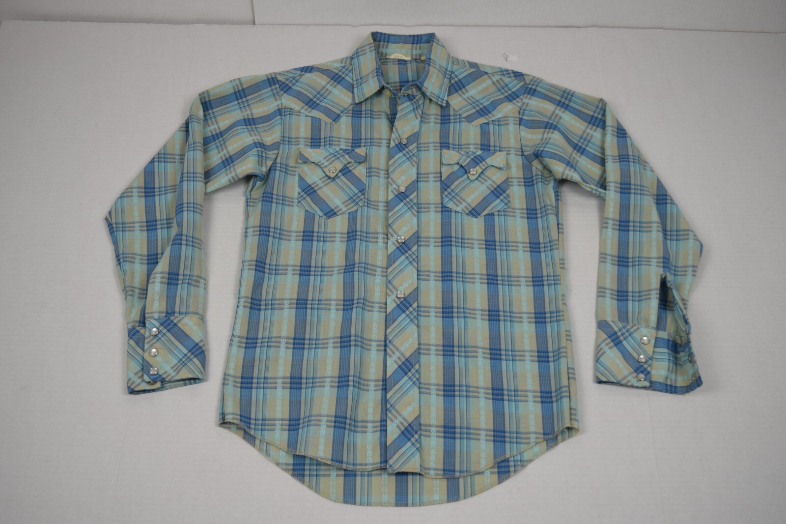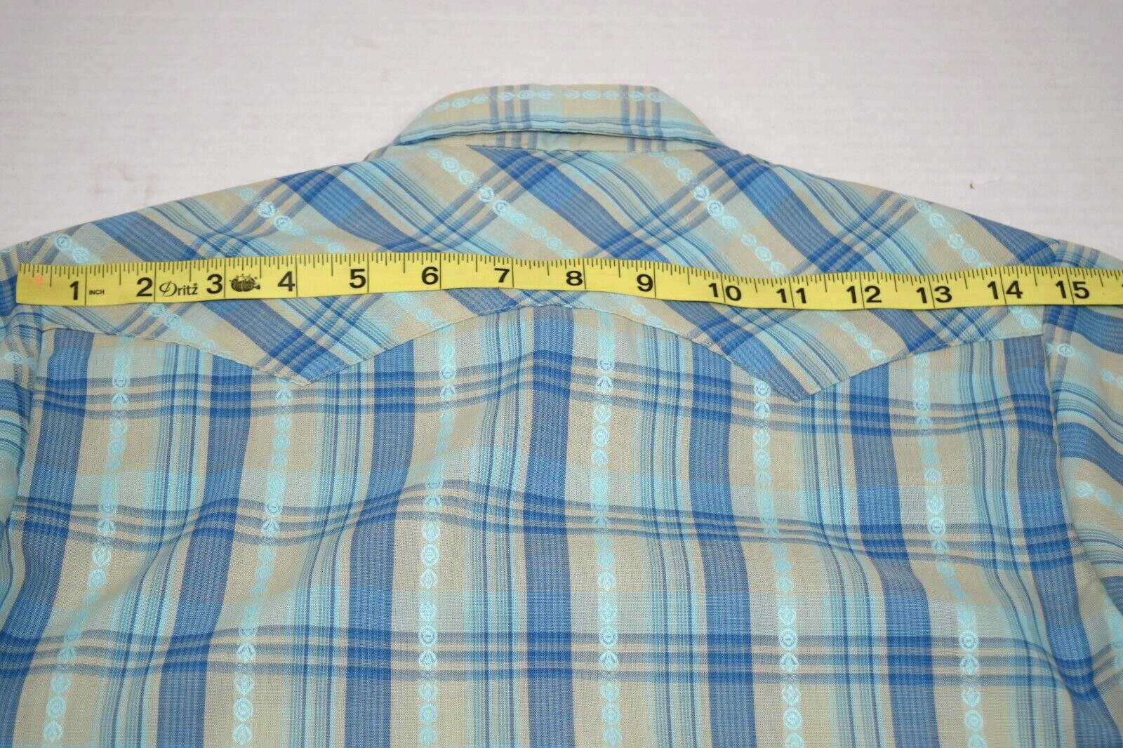 как выглядит Vintage Western Pearl Snaps Shirt Size S/M 60s Aqua Ivory Blue Grunge фото