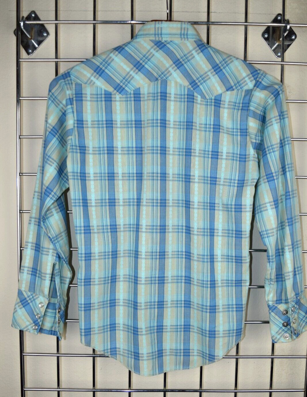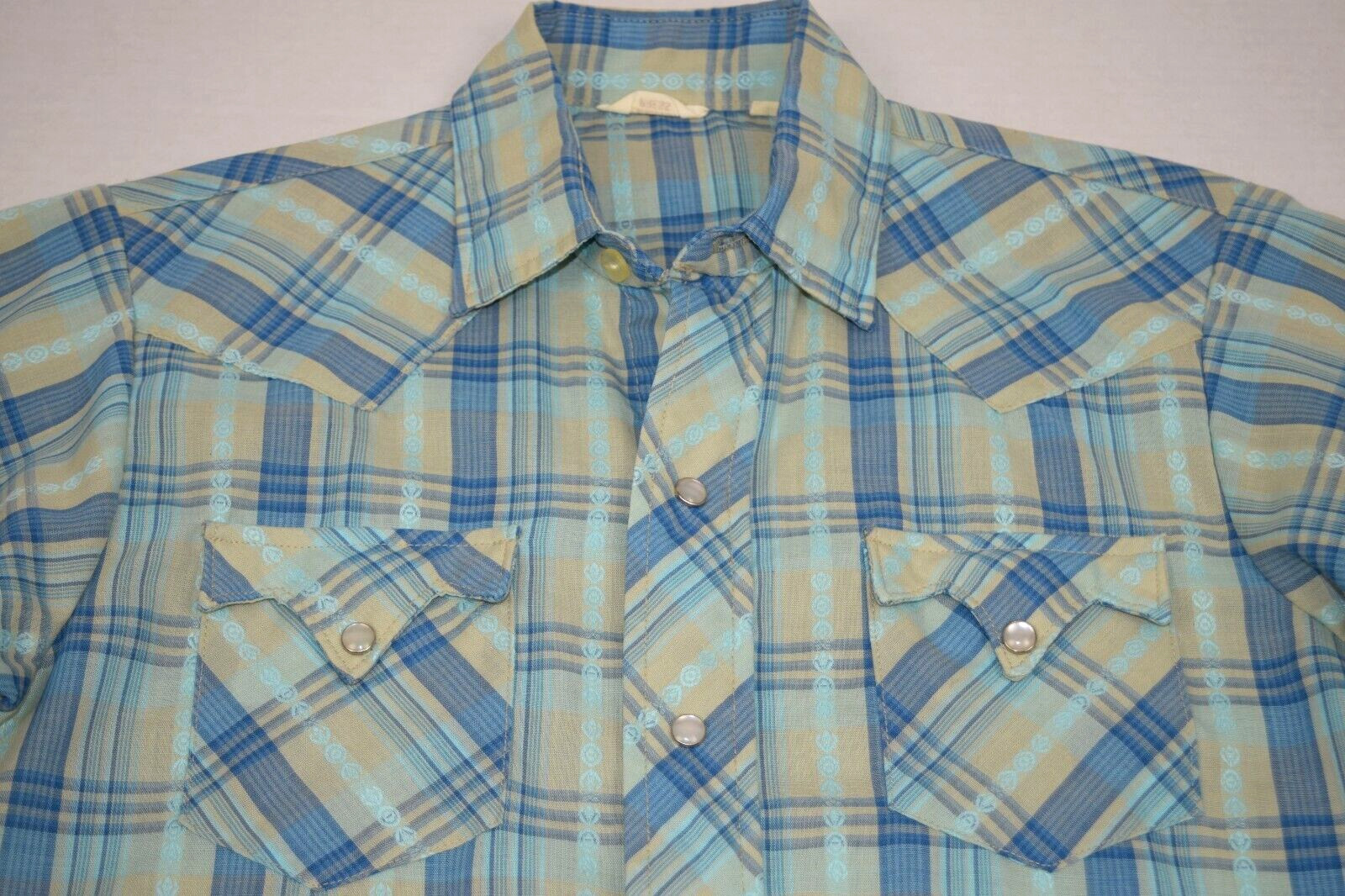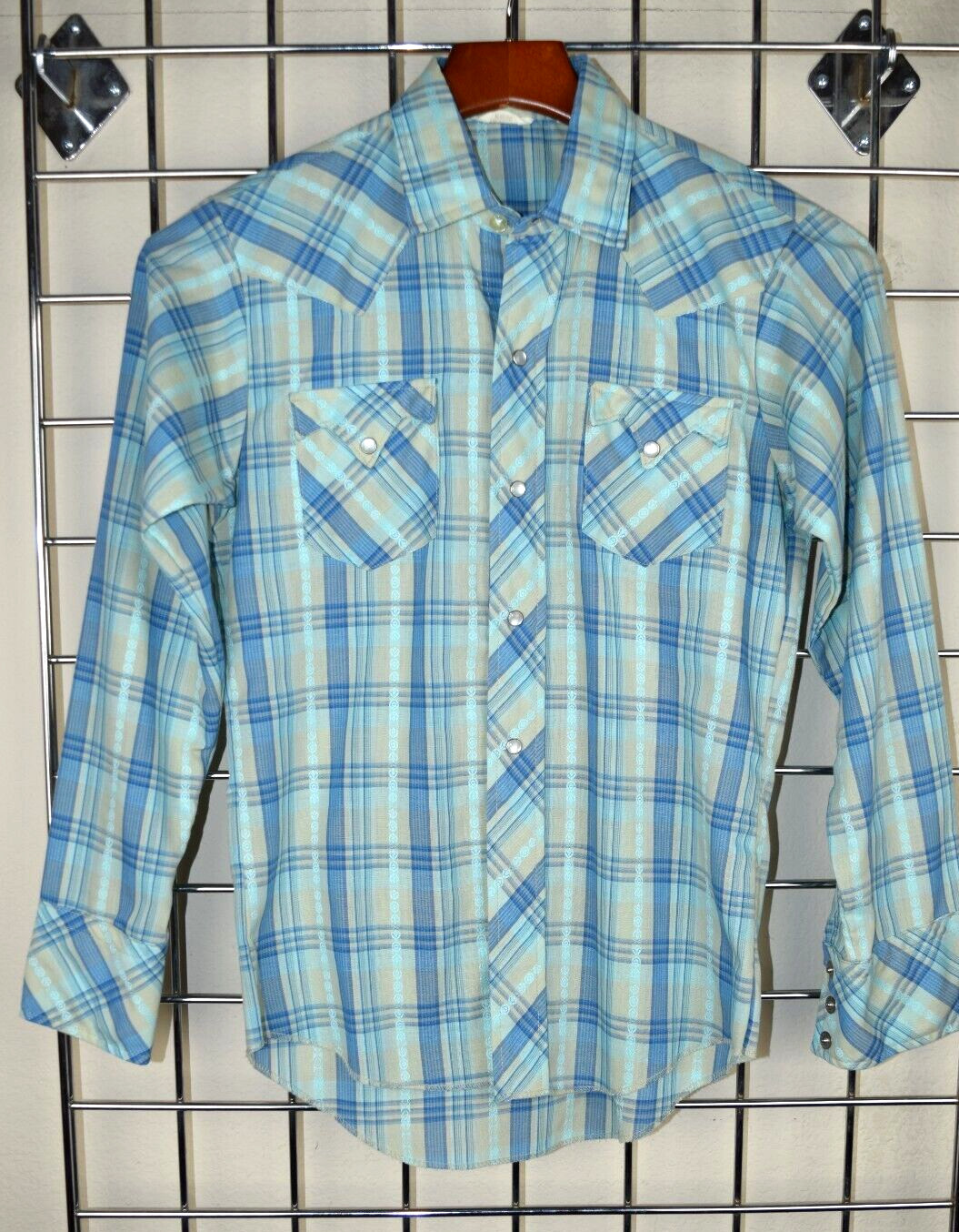 Vintage Western Pearl Snaps Shirt Size S/M 60s Aqua Ivory Blue Grunge
