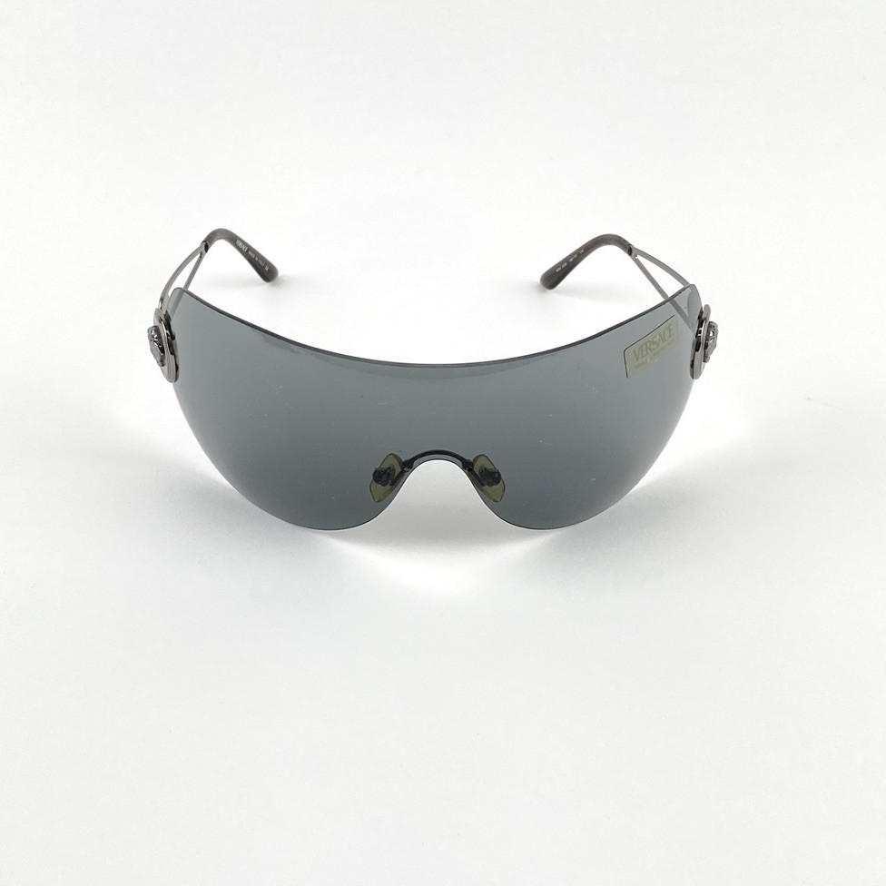 как выглядит Vintage Versace Mod. 2038 Oversized Shield Mask Sunglasses 1001/87 110 Italy фото