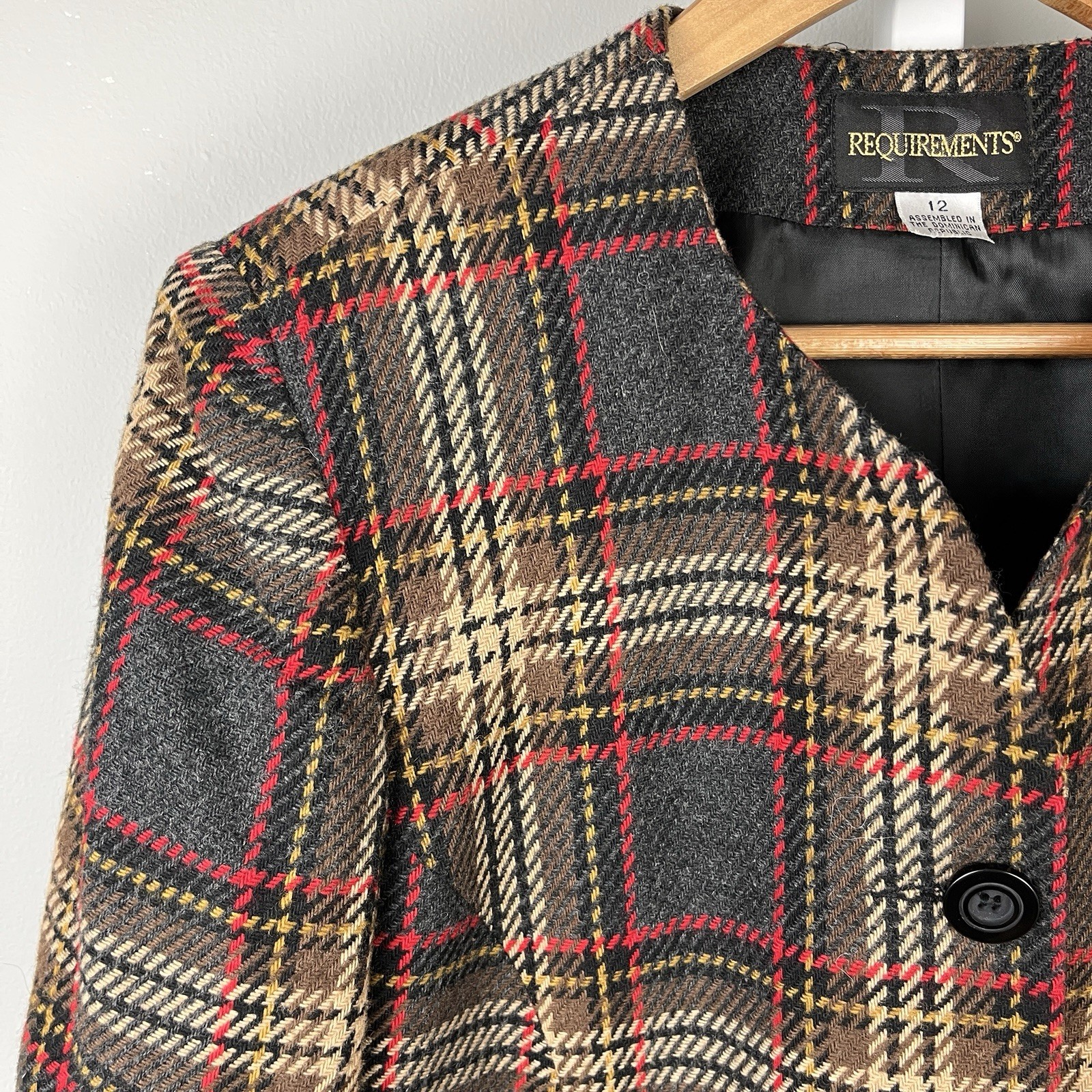 Vintage 90s Requirements Womens Blazer Jacket 12 Plaid Wool Blend Boxy Old Money