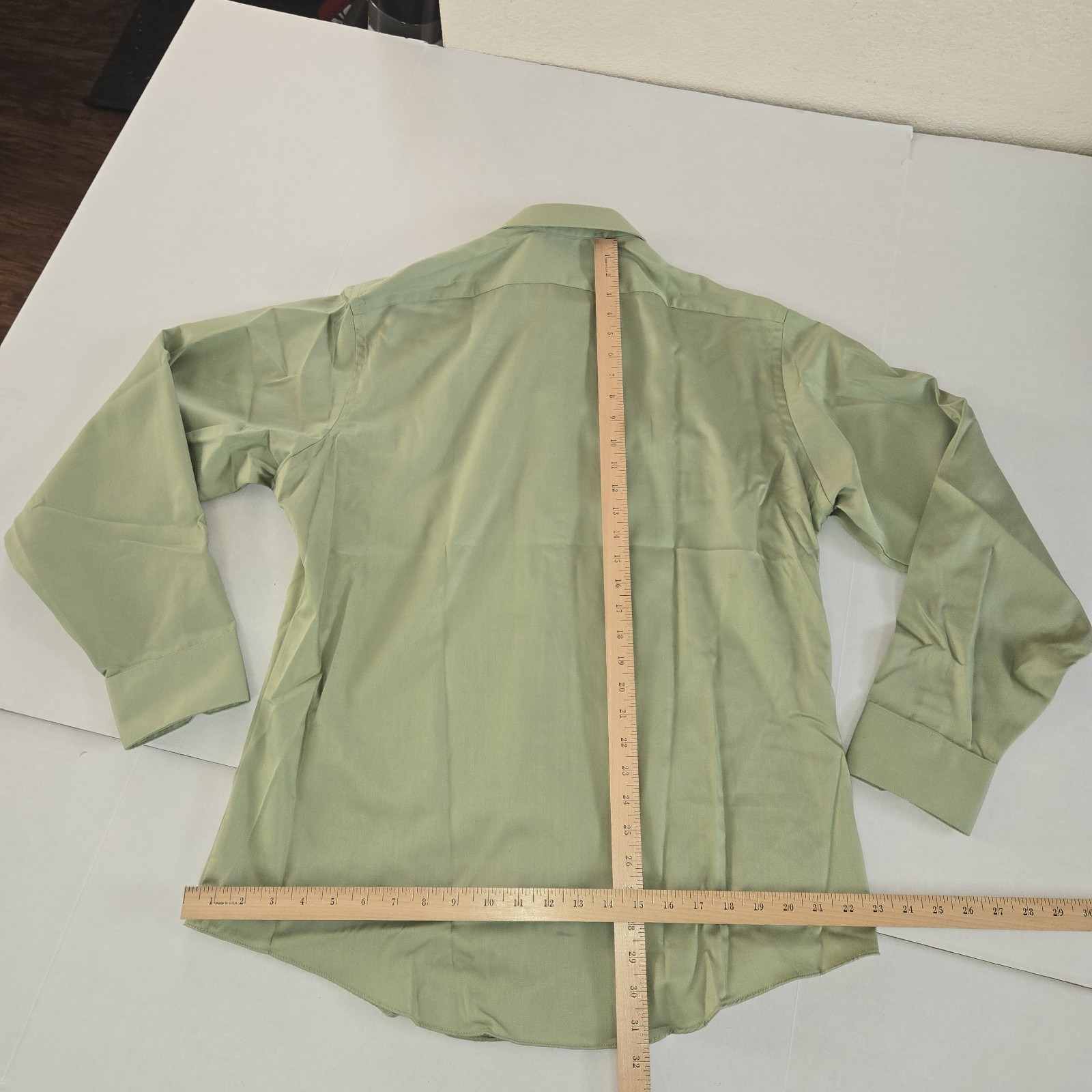 как выглядит Geoffrey Beene Button Up Shirt Mens 16 1/2 Green Solid Color Non-Iron Sateen NWT фото