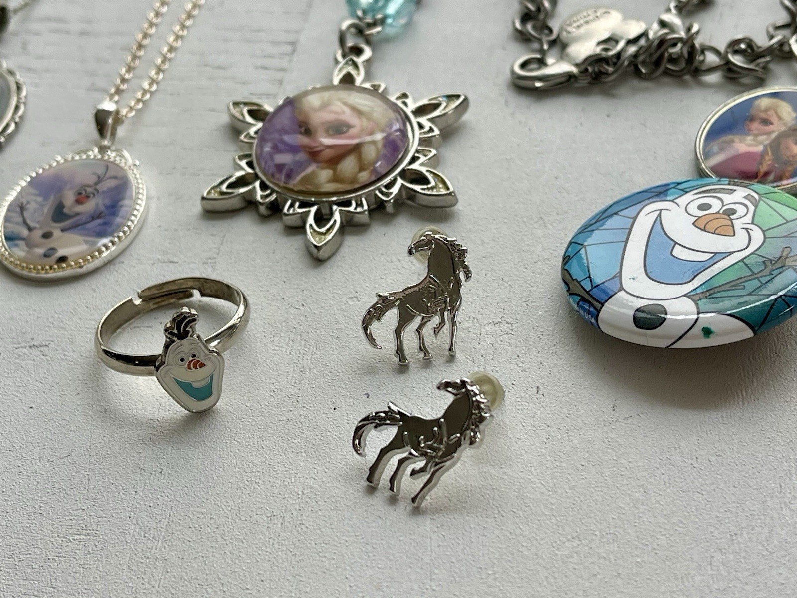 DISNEY FROZEN JEWELRY LOT ELSA ANNA NECKLACE CHARM BRACELET EARRING RING KEY SET