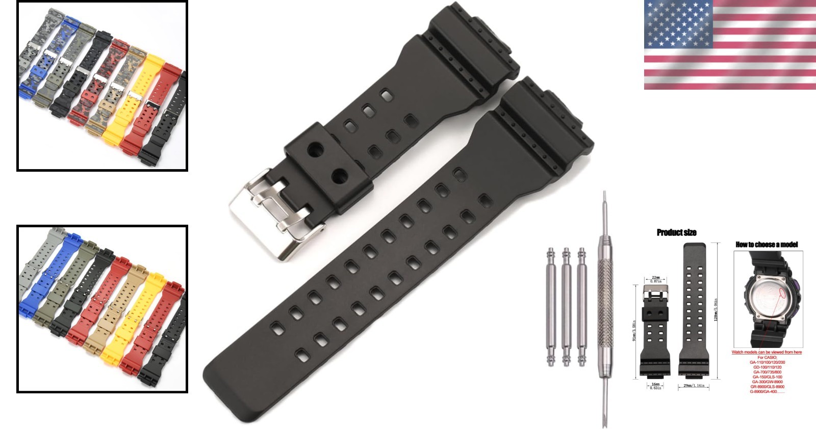 как выглядит 16mm High-Quality Resin Replacement Strap for G-Shock - Waterproof Stylish фото