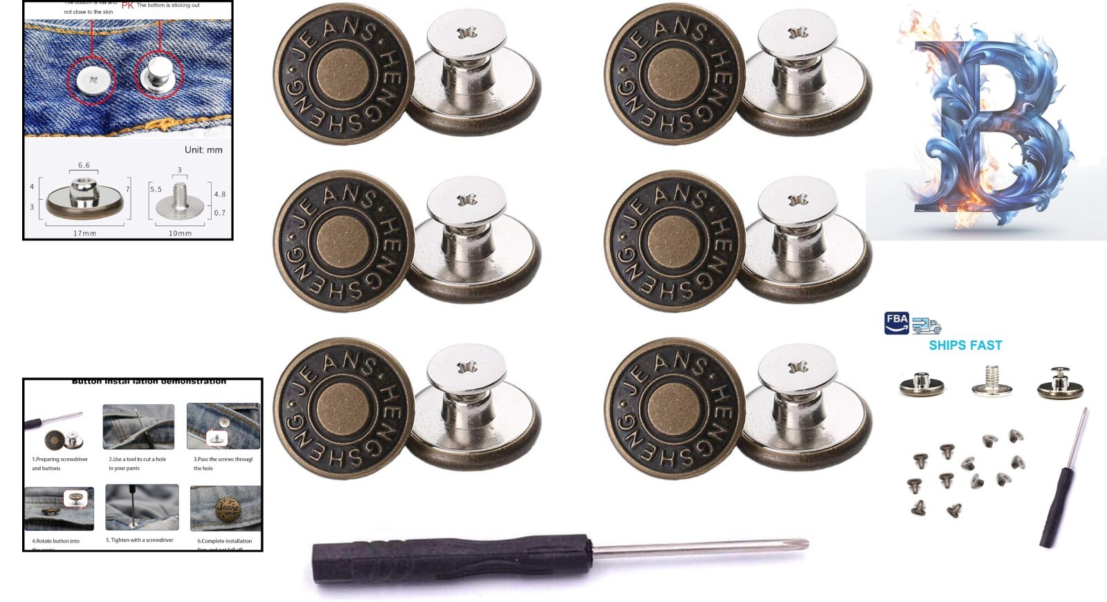 Easy Install 12 Pcs Brass Jeans Buttons Set - 17mm No-Sew Adjustable