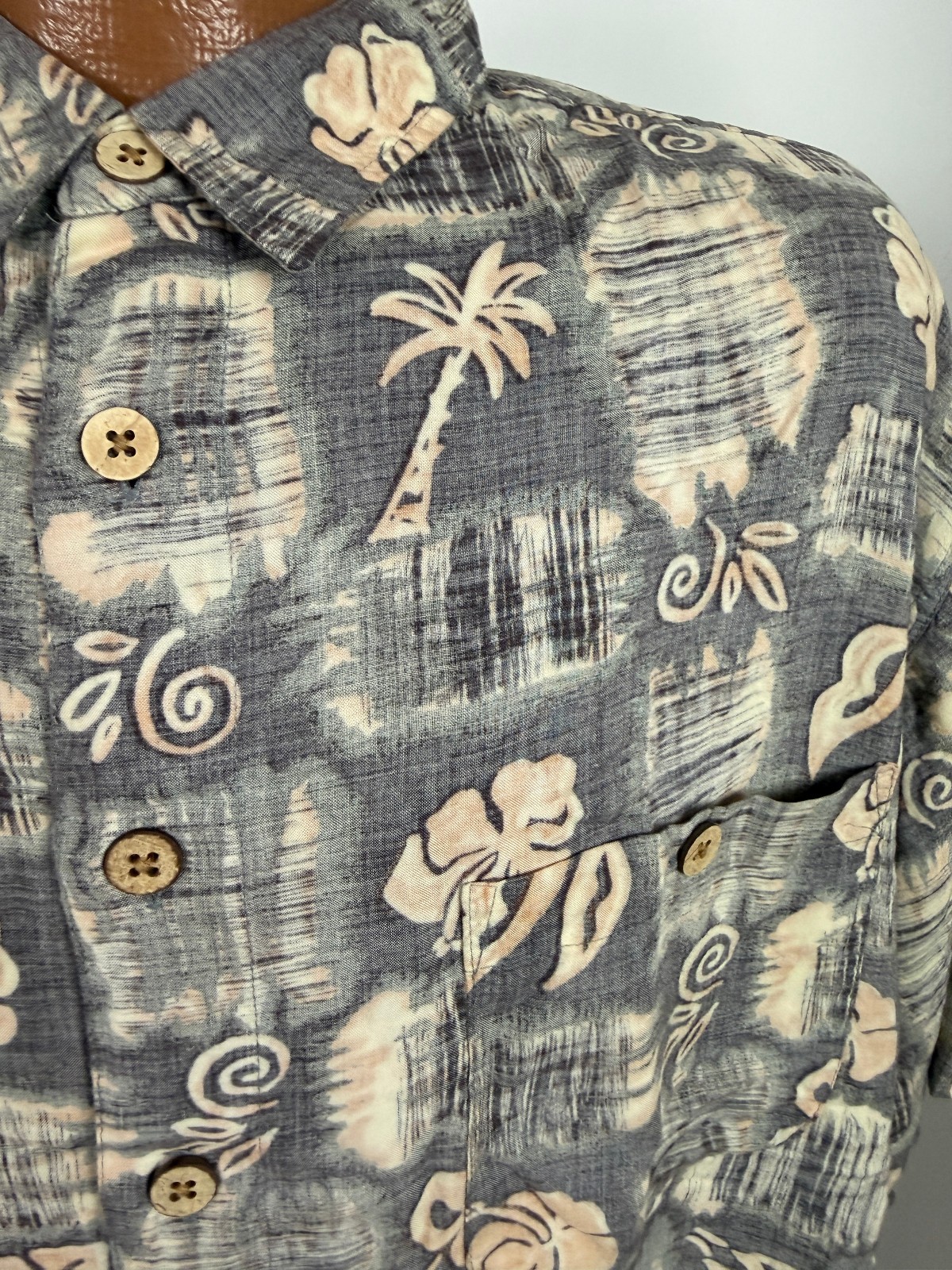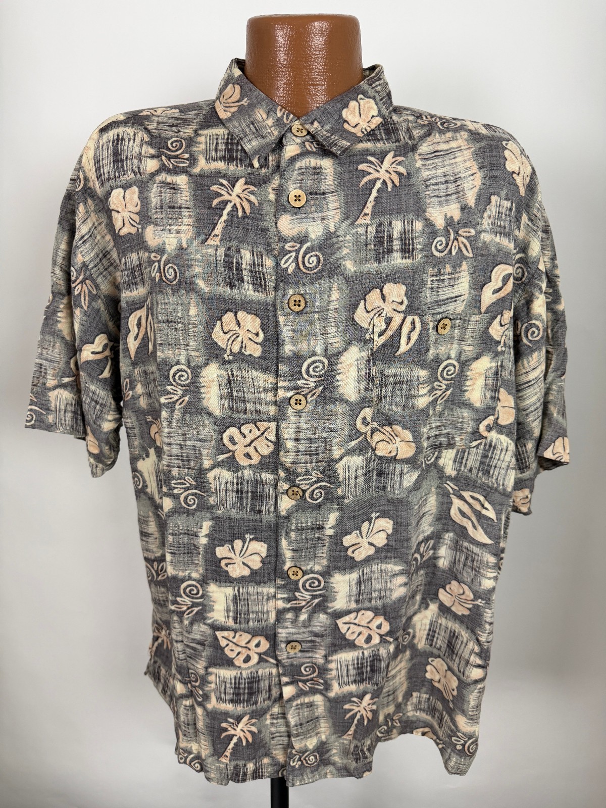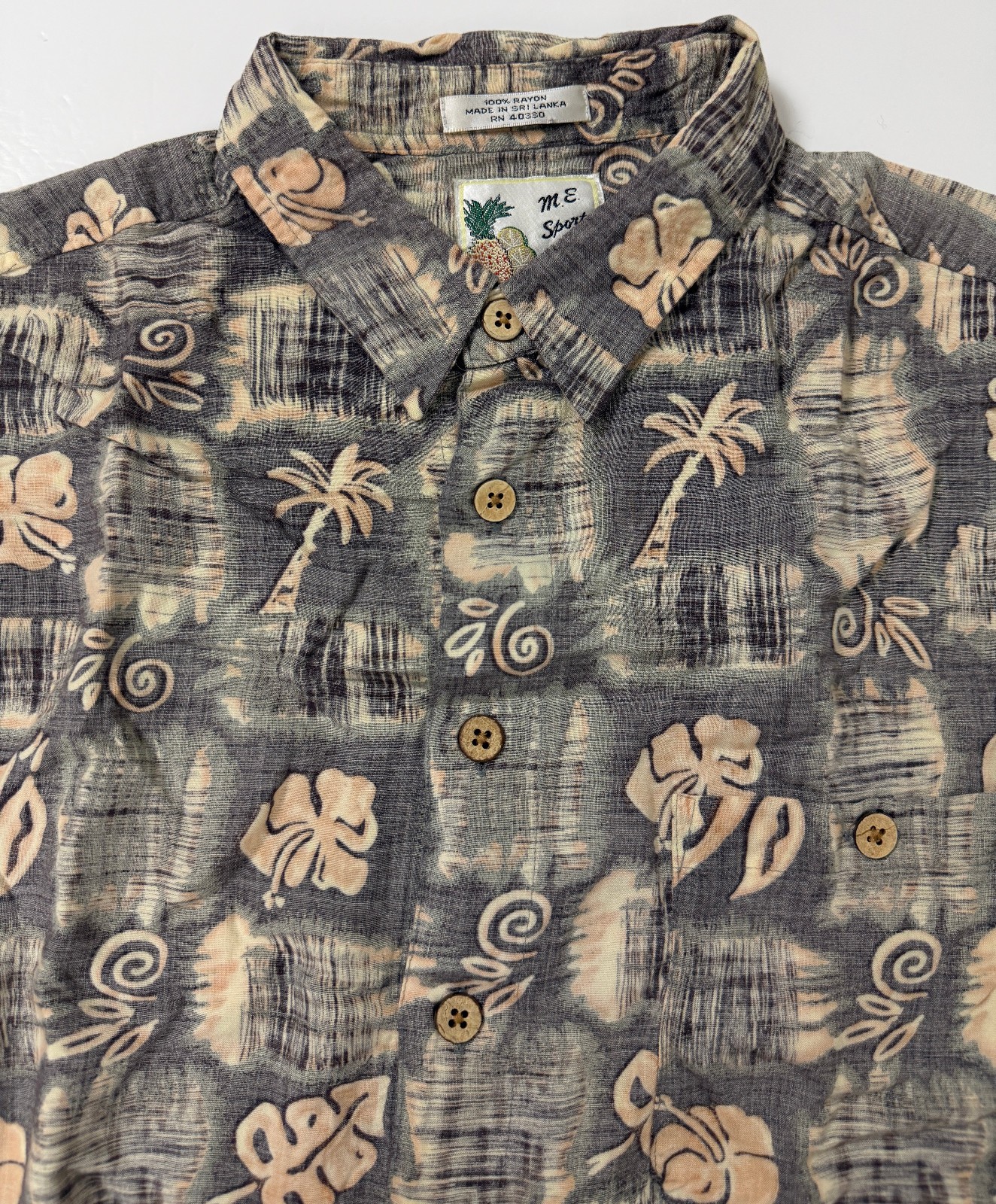 Vintage 90s Reverse-Print Hawaiian Shirt Men XL Tribal Floral Tiki Luau Rayon