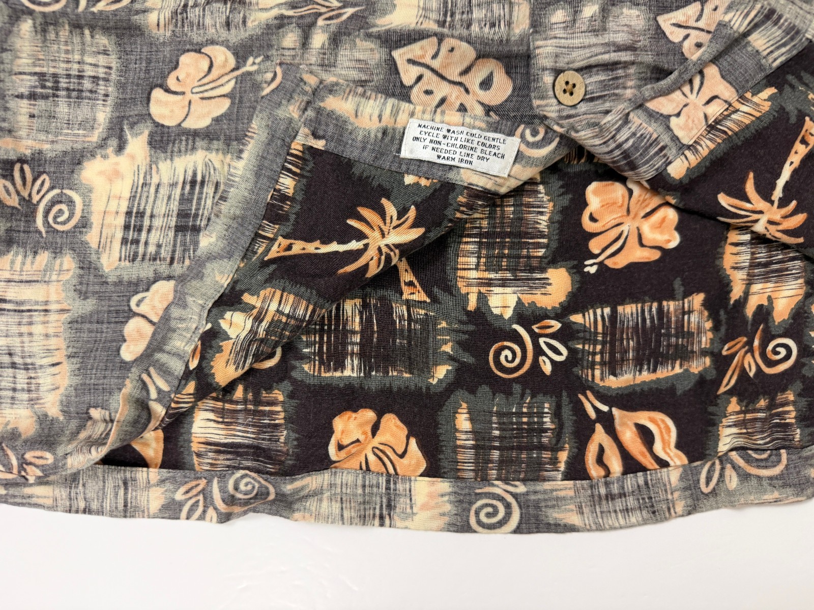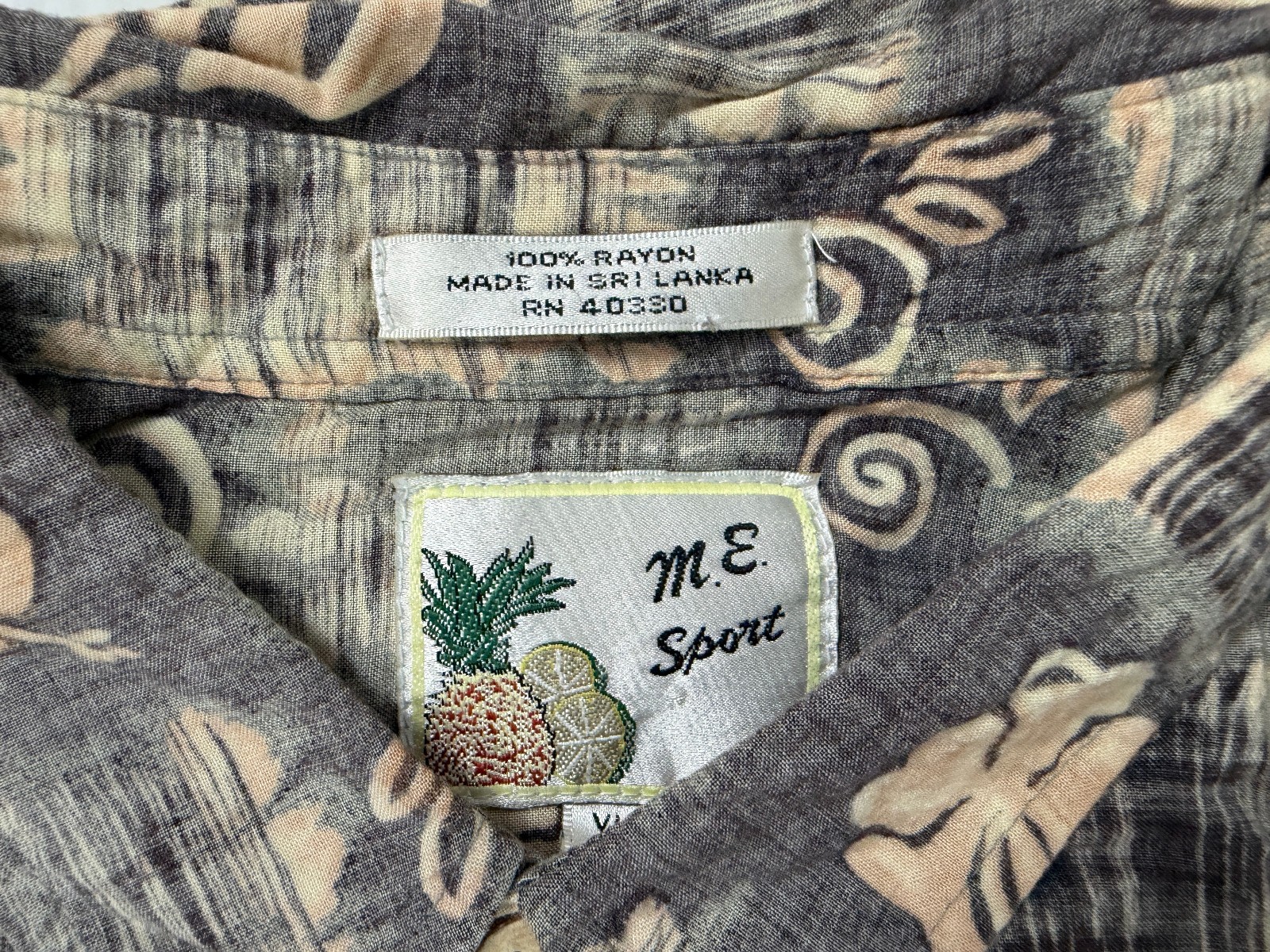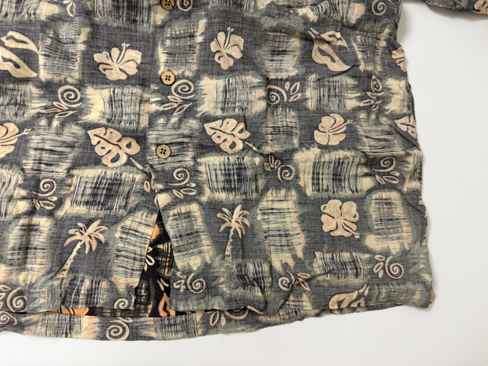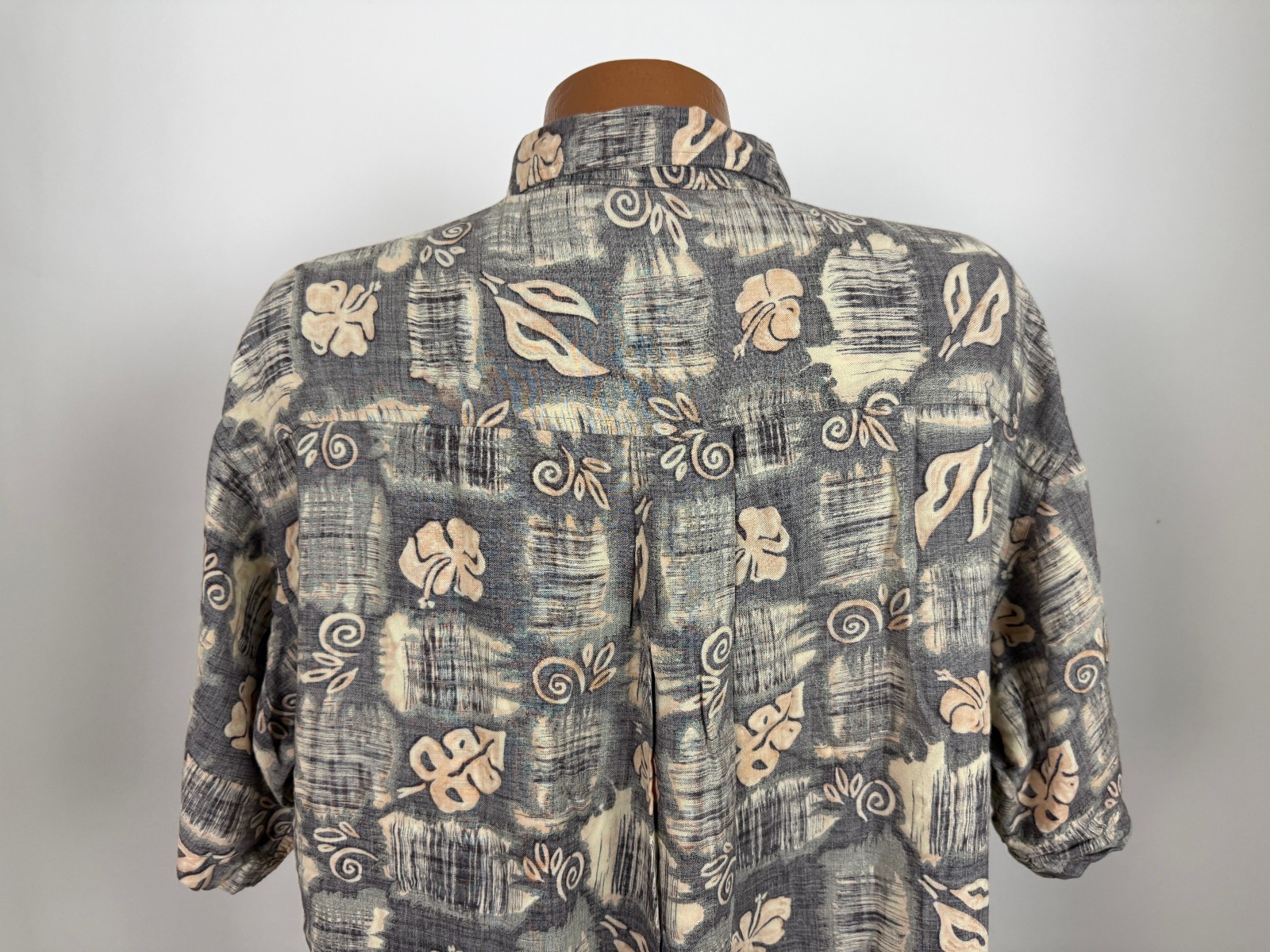 Vintage 90s Reverse-Print Hawaiian Shirt Men XL Tribal Floral Tiki Luau Rayon