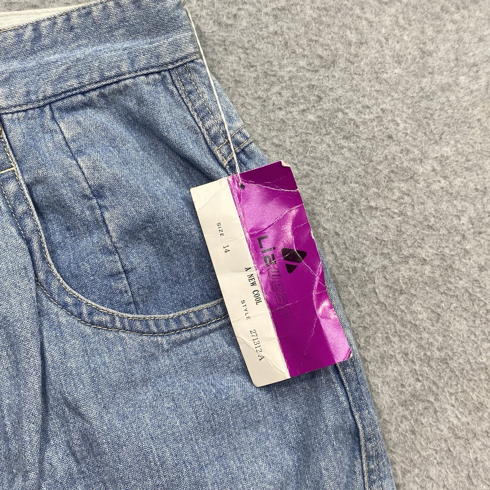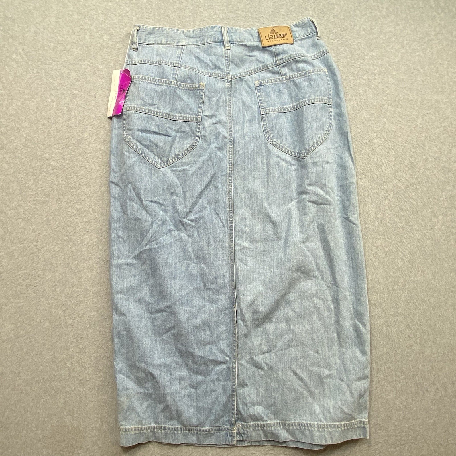 VTG Lizwear Blue Denim Long Skirt Womens Sz 14 Light Washed Deadstock Distressed