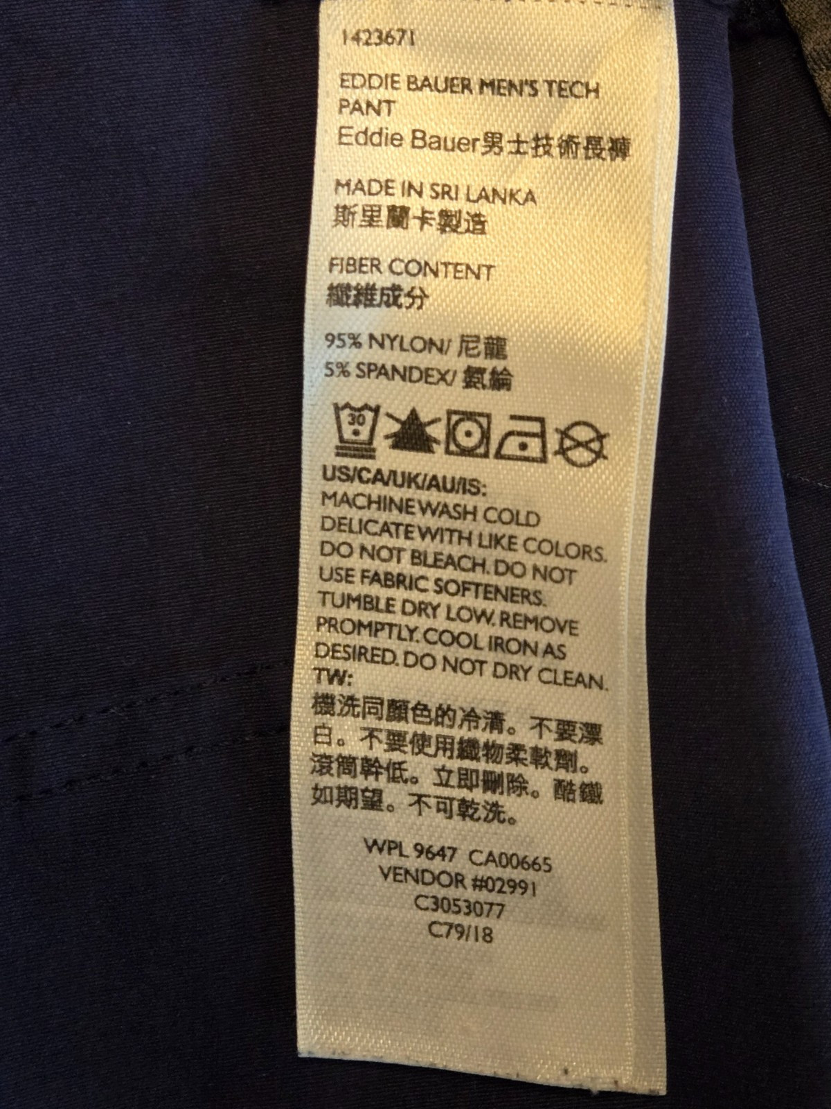 как выглядит Eddie Bauer Outdoor Tech Travel Pants Mens 38x30 Navy Blue Nylon Spandex Stretch фото