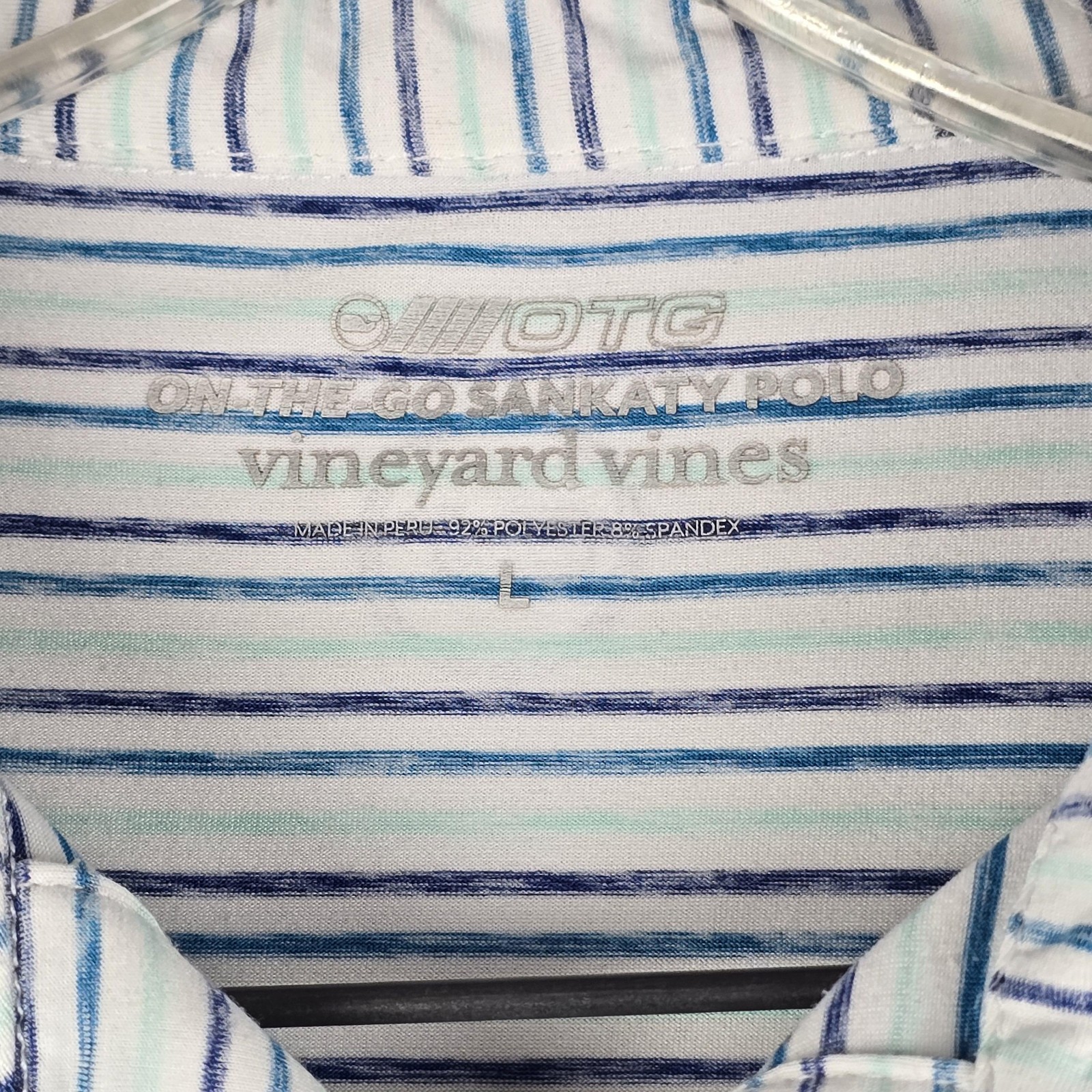 как выглядит Vineyard Vines Polo Shirt Mens Large Striped Sankaty Performance Whale Logo фото