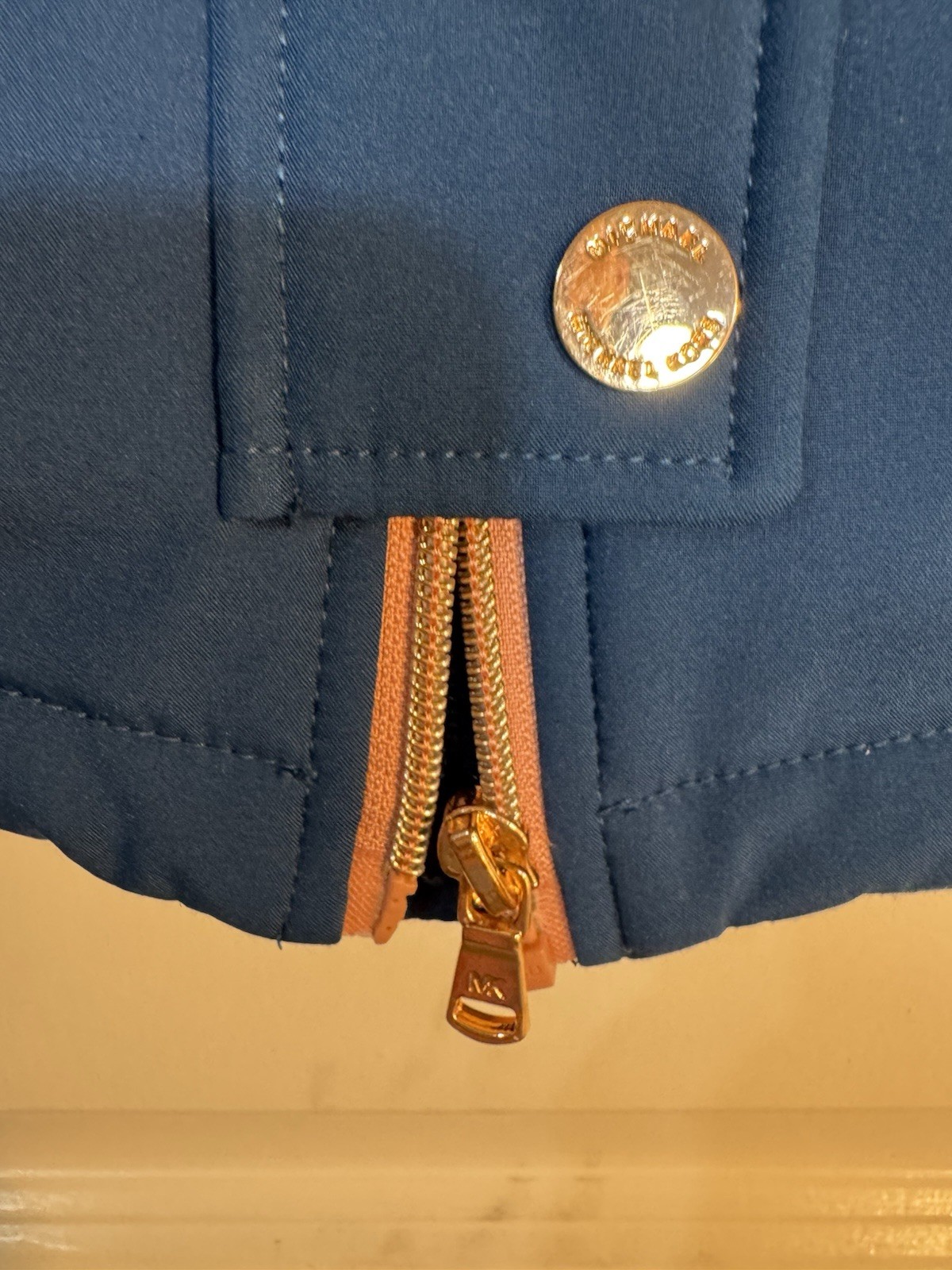 как выглядит Michael Kors Girls Blue Hooded Softshell Jacket Gold Hardware Size 7/8 фото