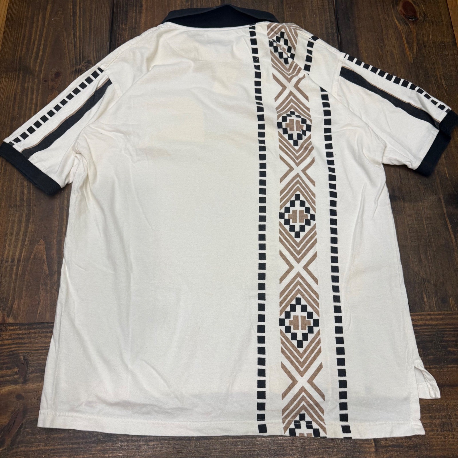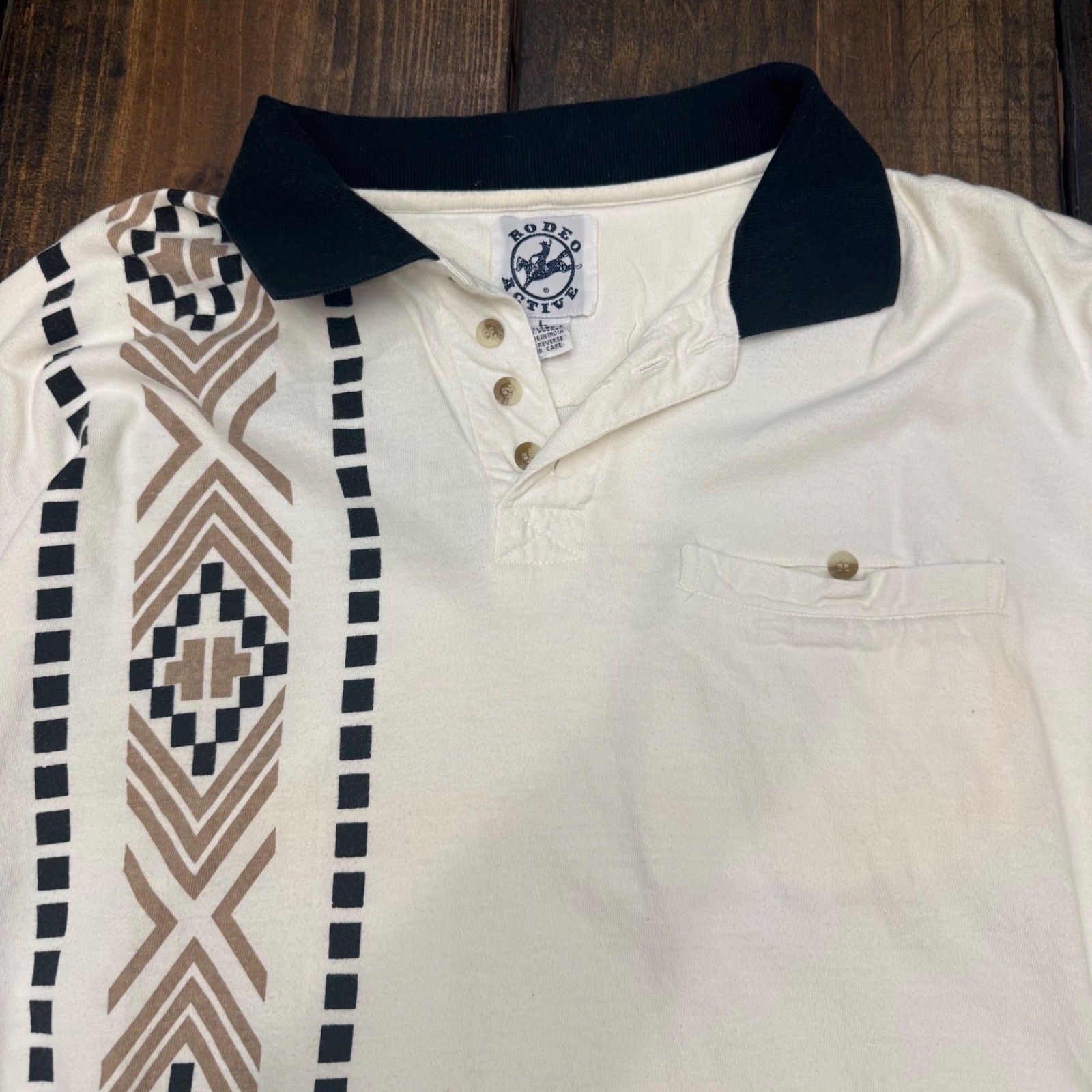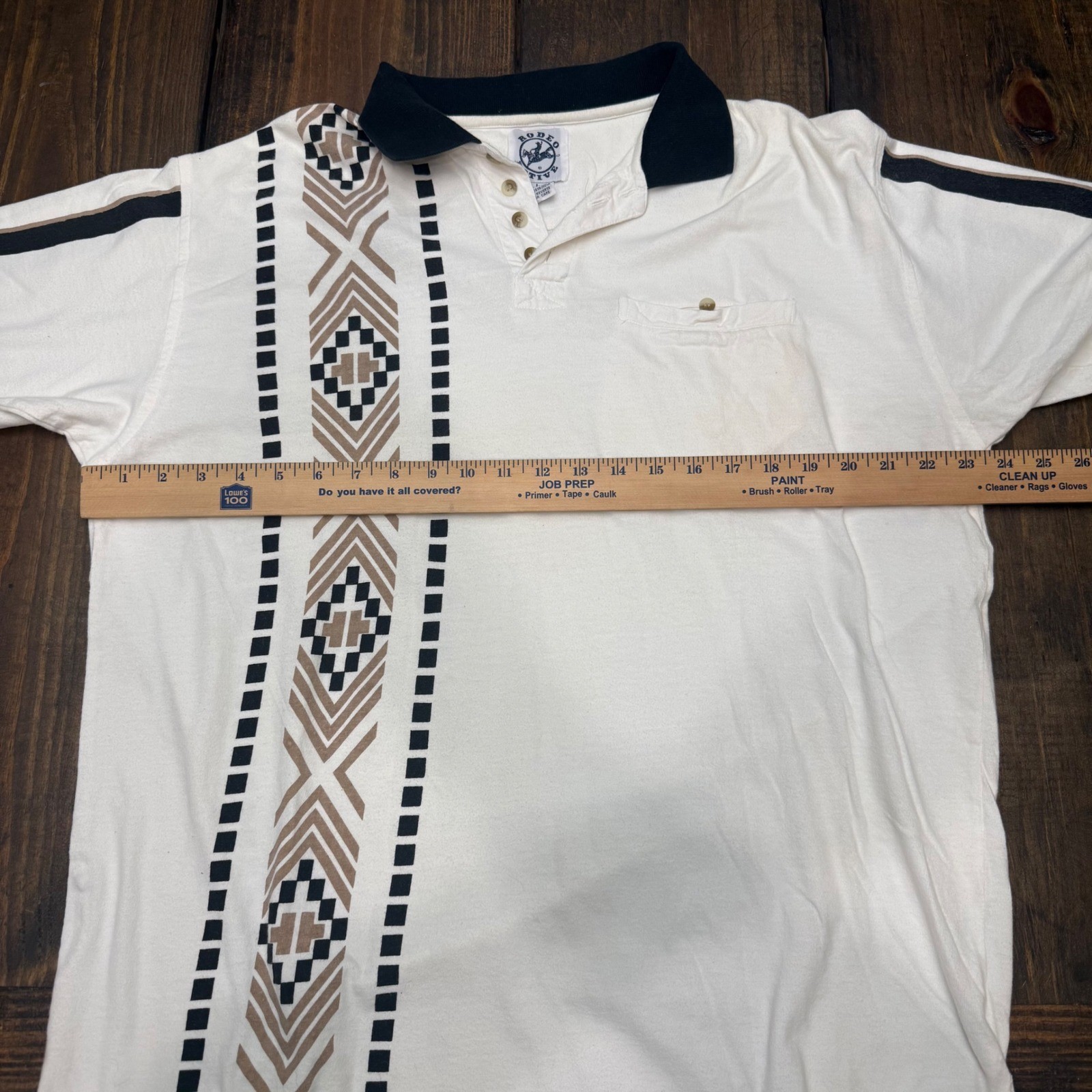 Rodeo Active Mens L Southwestern Geometric Print Polo Shirt Off White Vintage