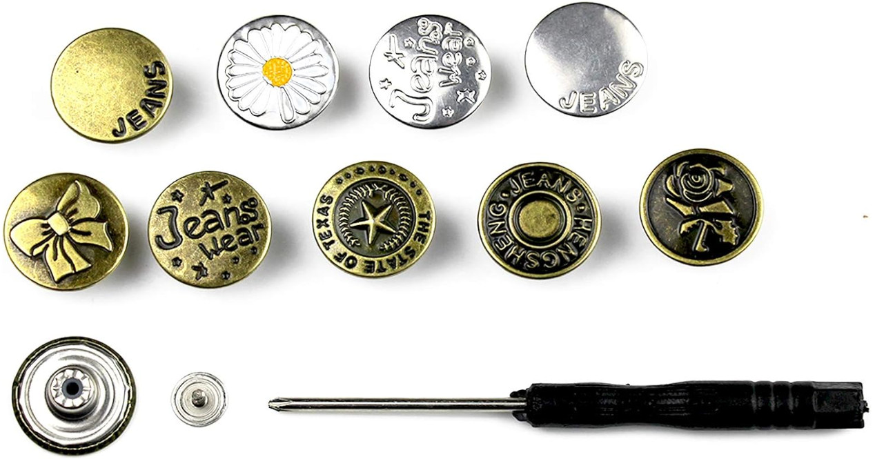9 Sets Replacement Jeans Buttons 17mm No-Sew Nailess Removable Metal Jeans