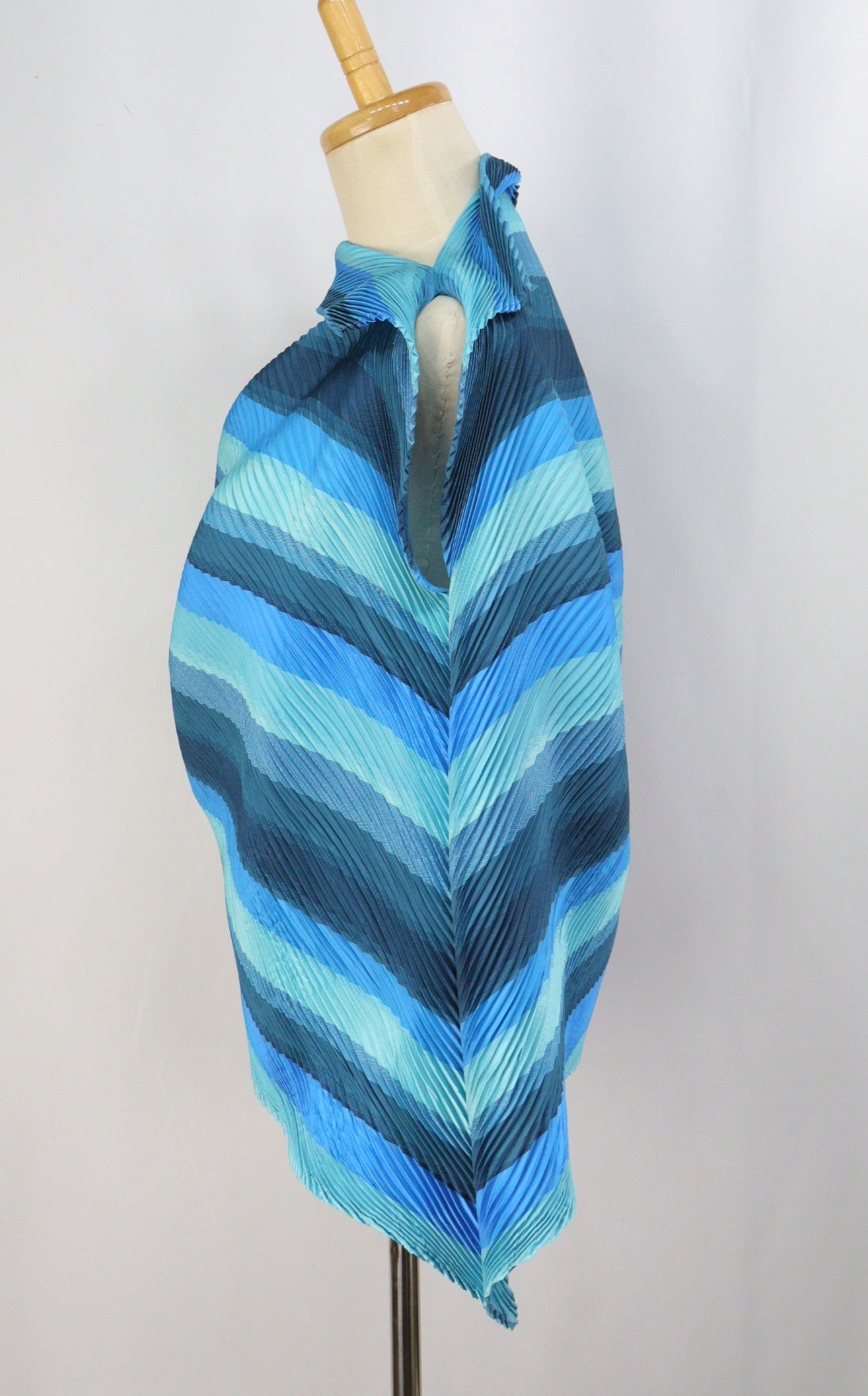 как выглядит Authentic ISSEY MIYAKE Blue Pleats Asymmetry Sleeveless Top 116 6711 фото