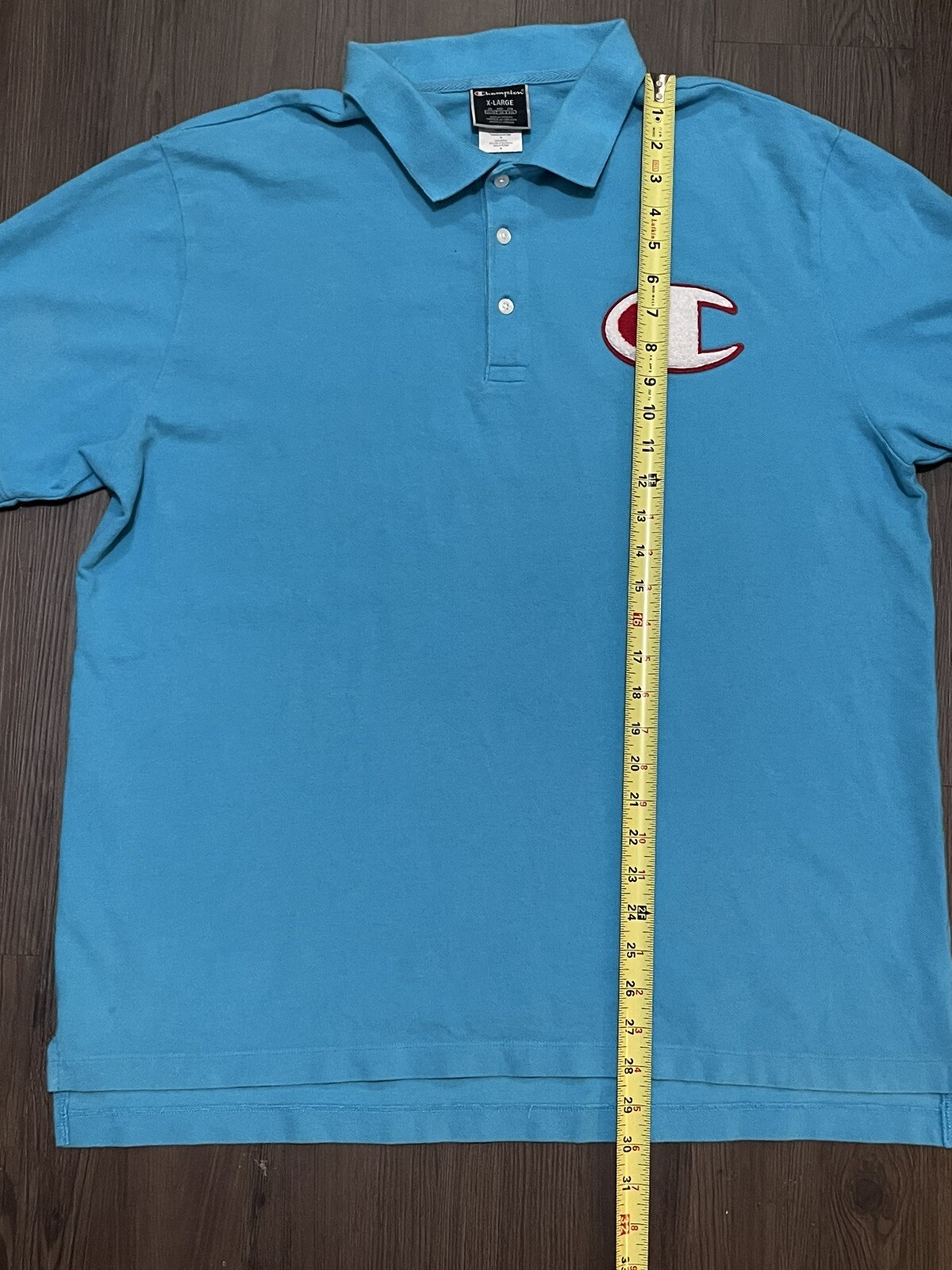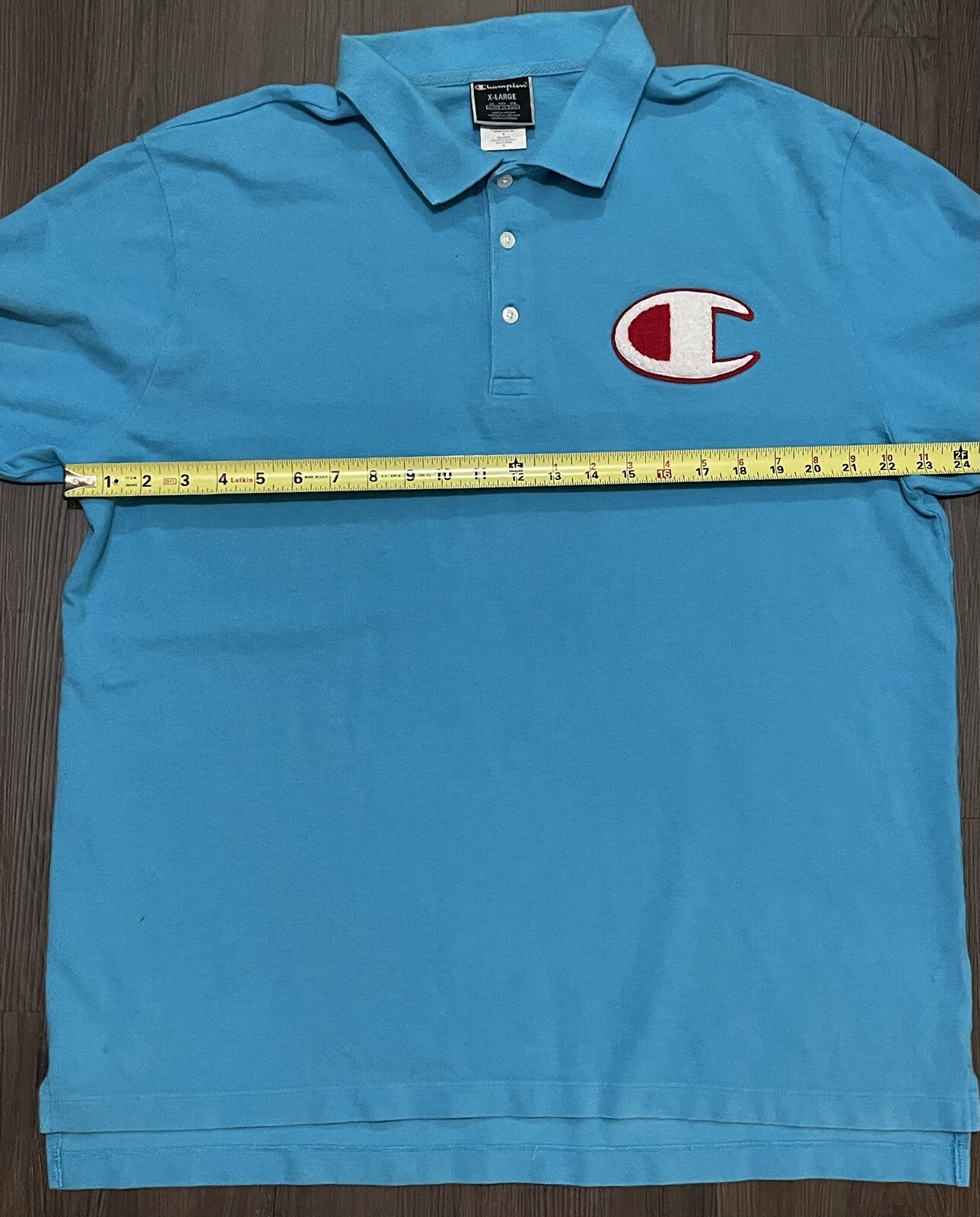 как выглядит Champion XL Short Sleeve Blue Polo Shirt Big Logo Embroidered Cotton фото