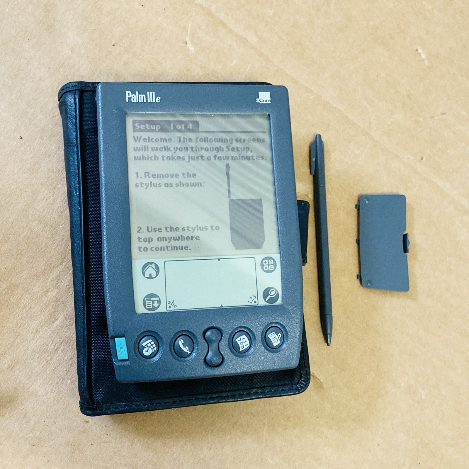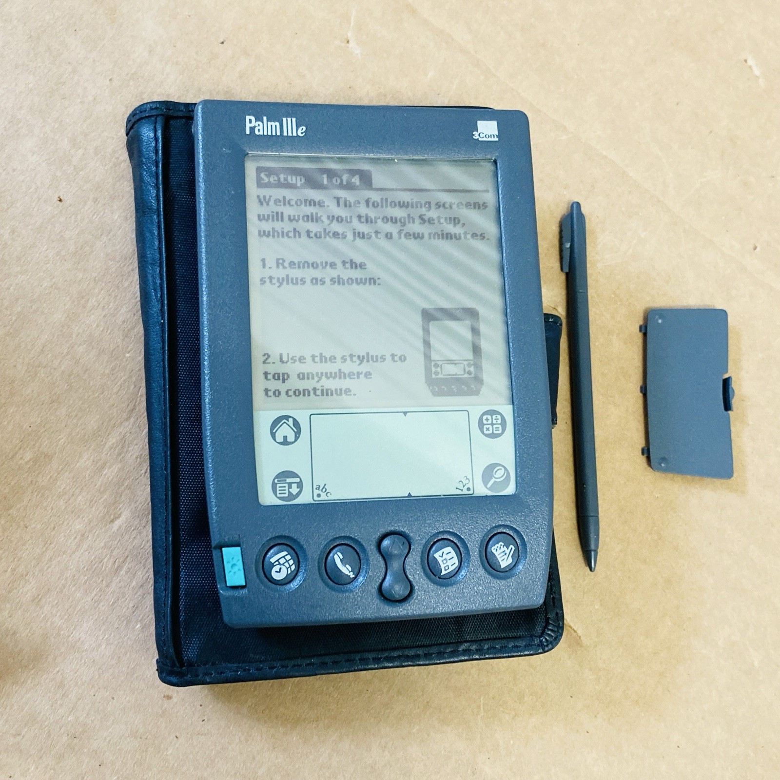 3Com Palm IIIe PDA With flip cover stylus Tested Works