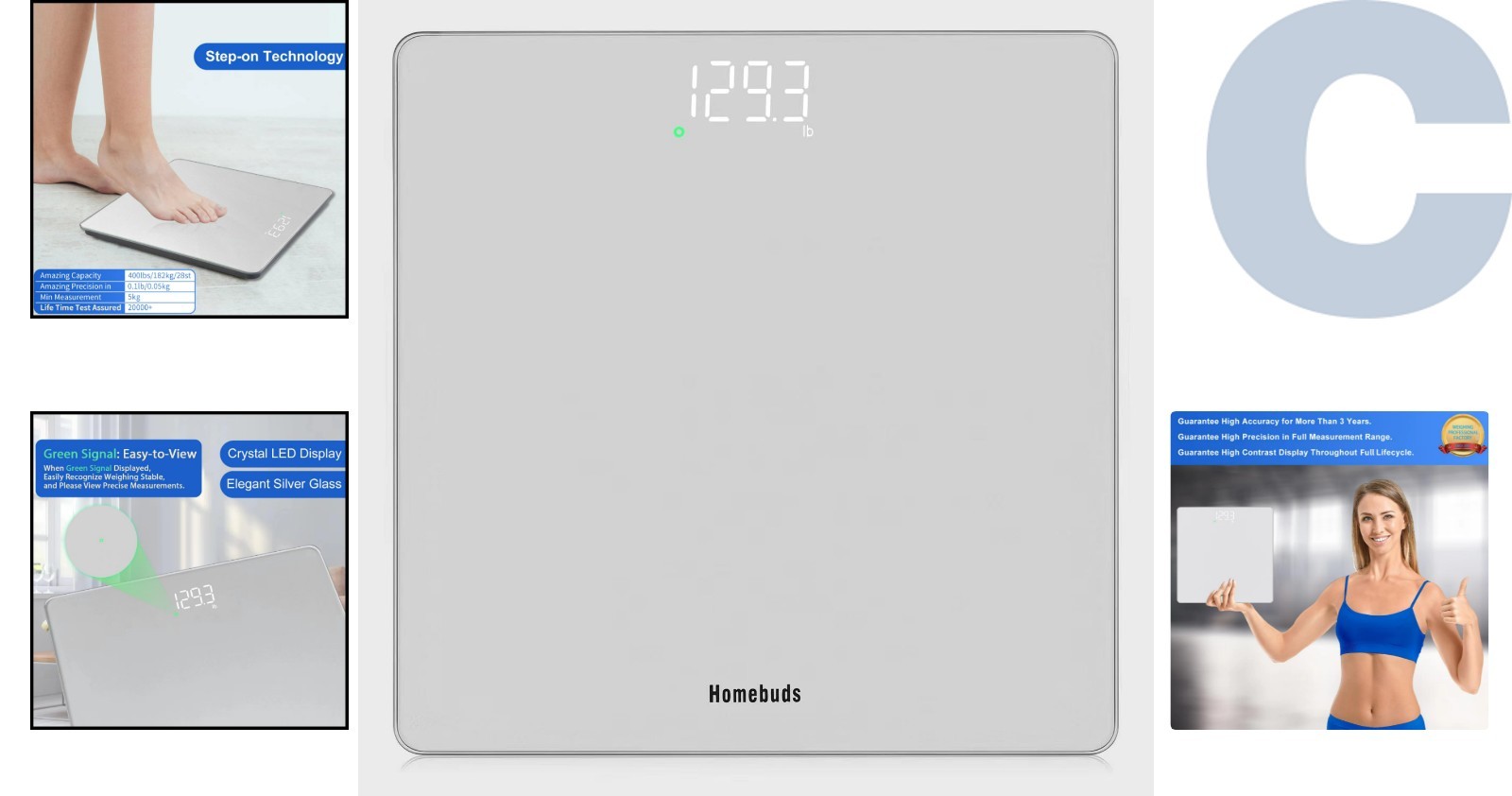 High-Accuracy Bathroom Scale 400lb Capacity, Auto Shut-Off Lightweight