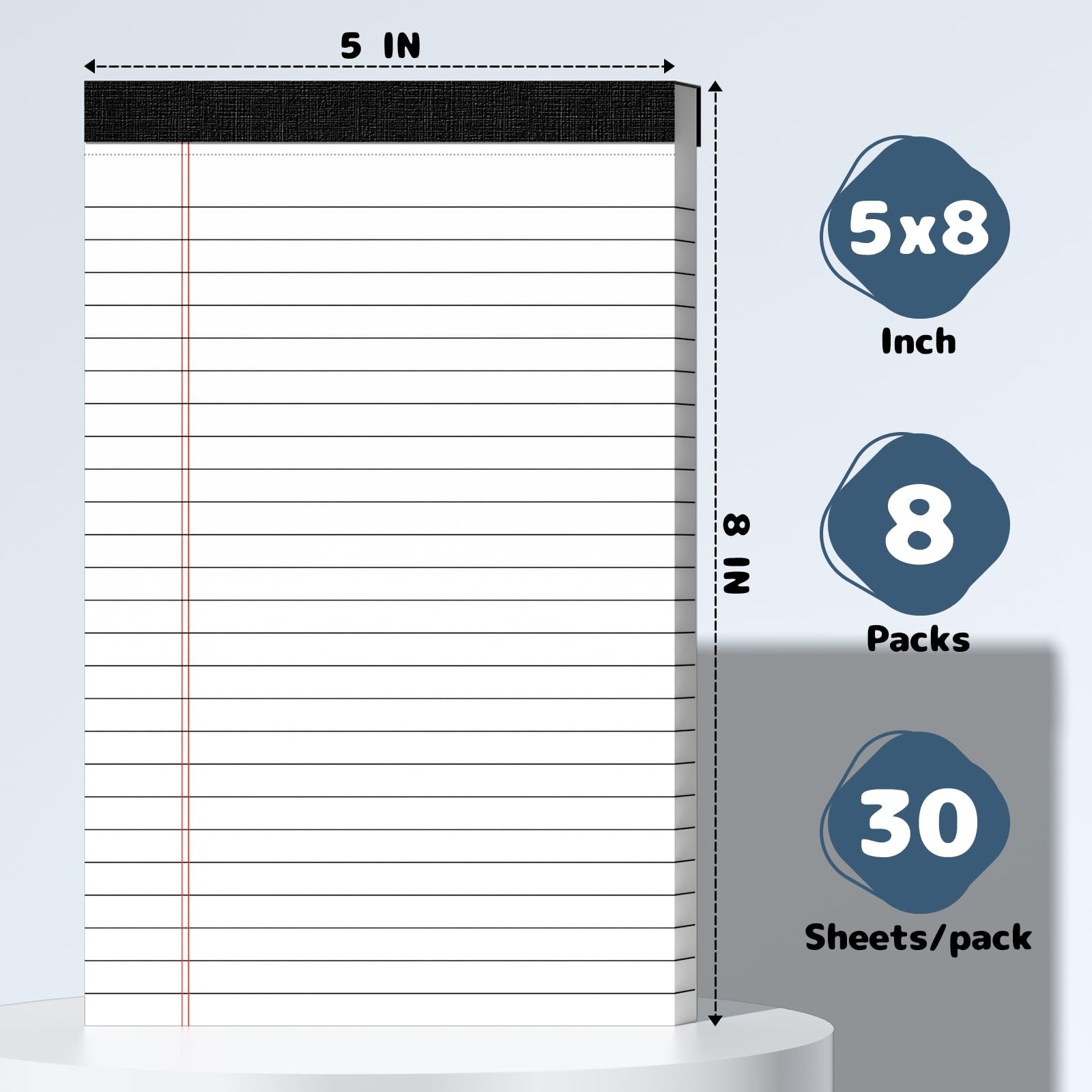 5X8 Legal Pads Writing Pad Note Pads, 8 Pack College Ruled Lined Paper Pad, Whit