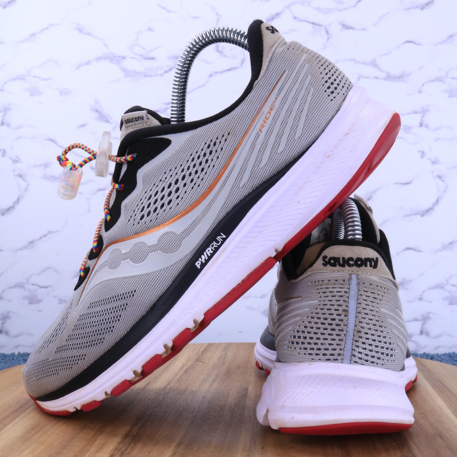 Saucony Ride 14 Gray Black White Mesh Athletic Running Shoes Sneakers Women Sz 9