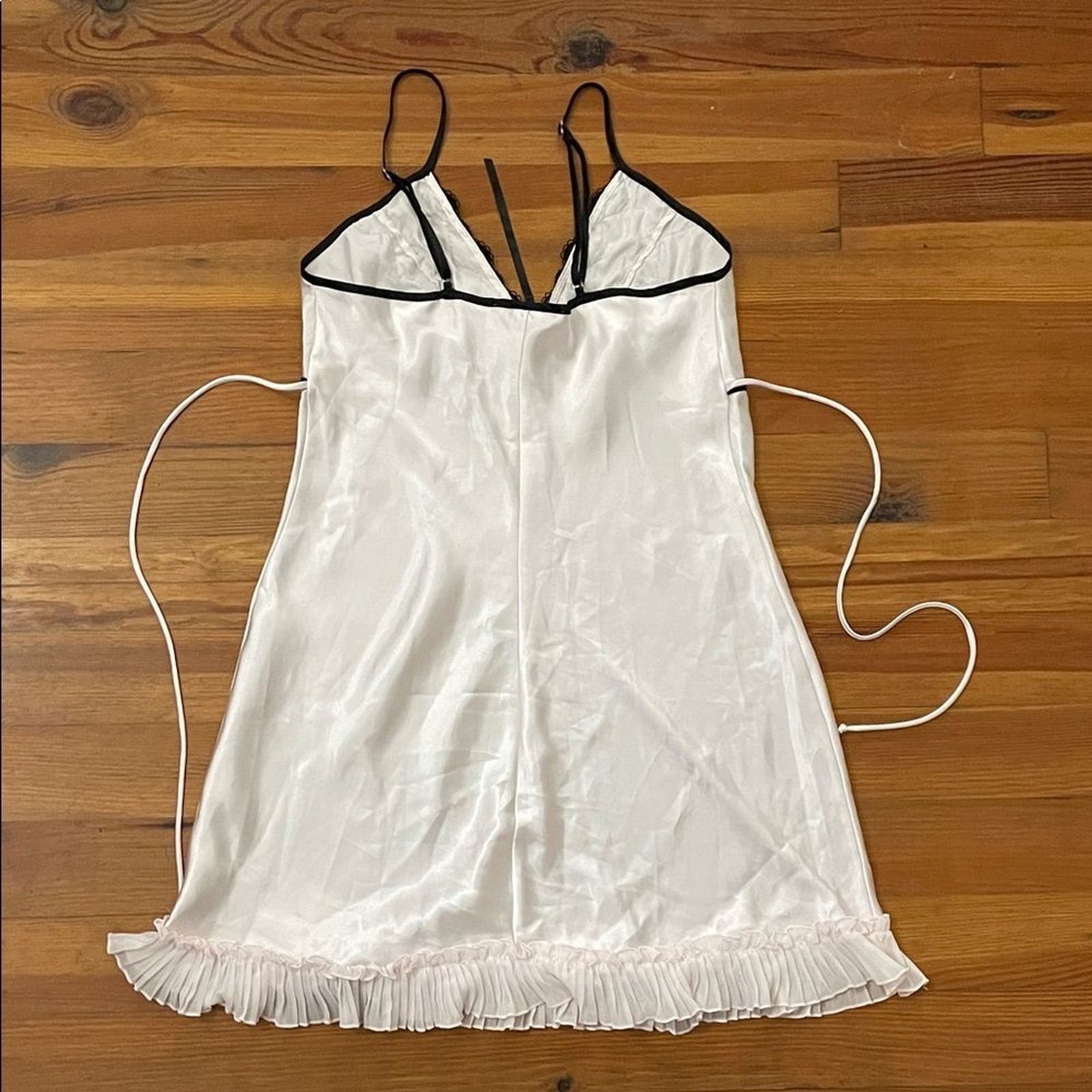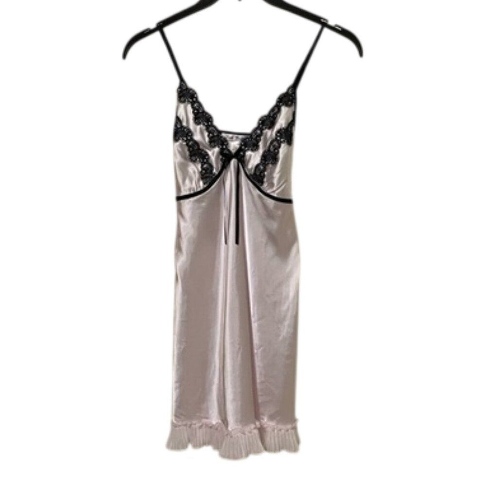 как выглядит Linea Donatella Pink Satin Chemise Nightgown Lace Ruffle Hem Womens Medium фото