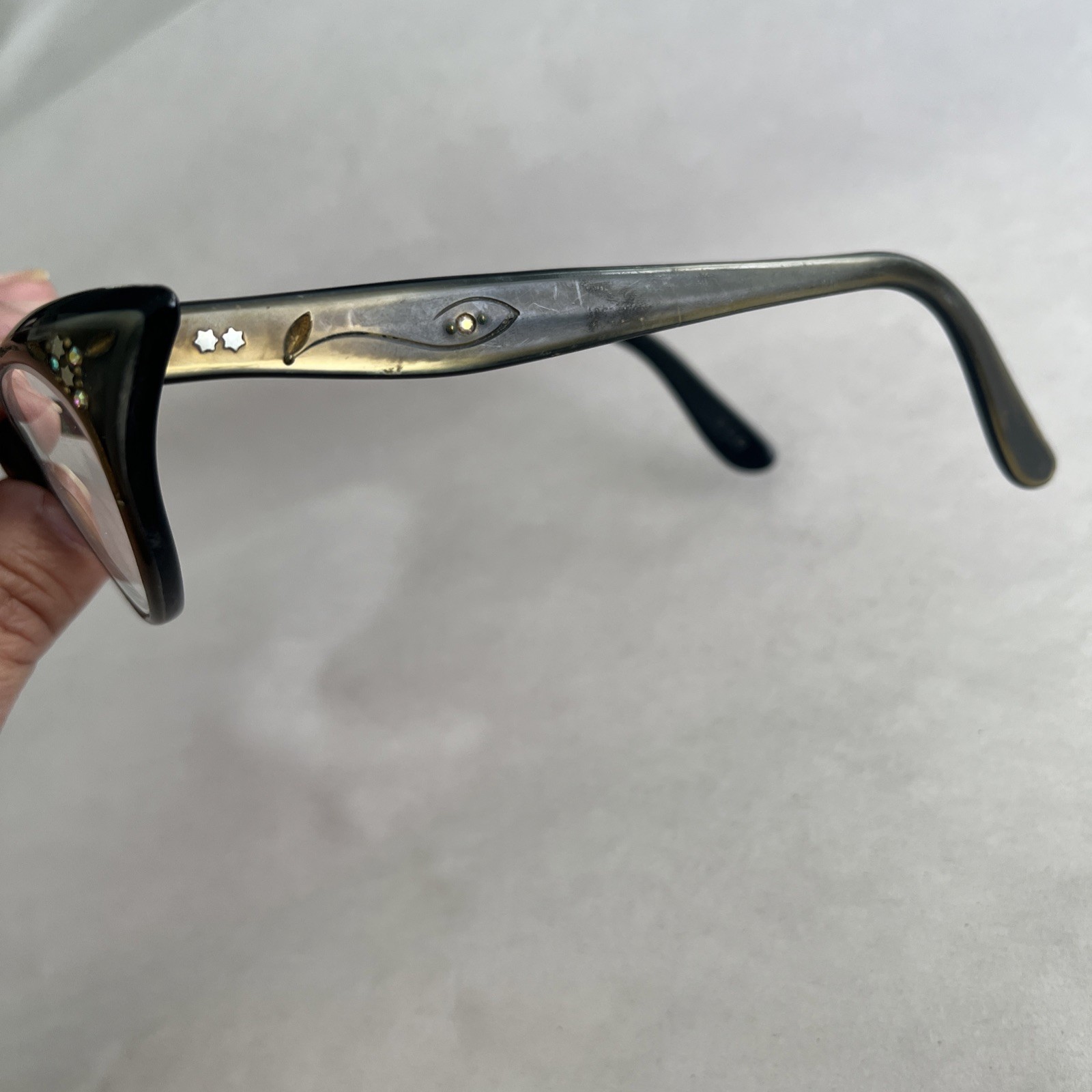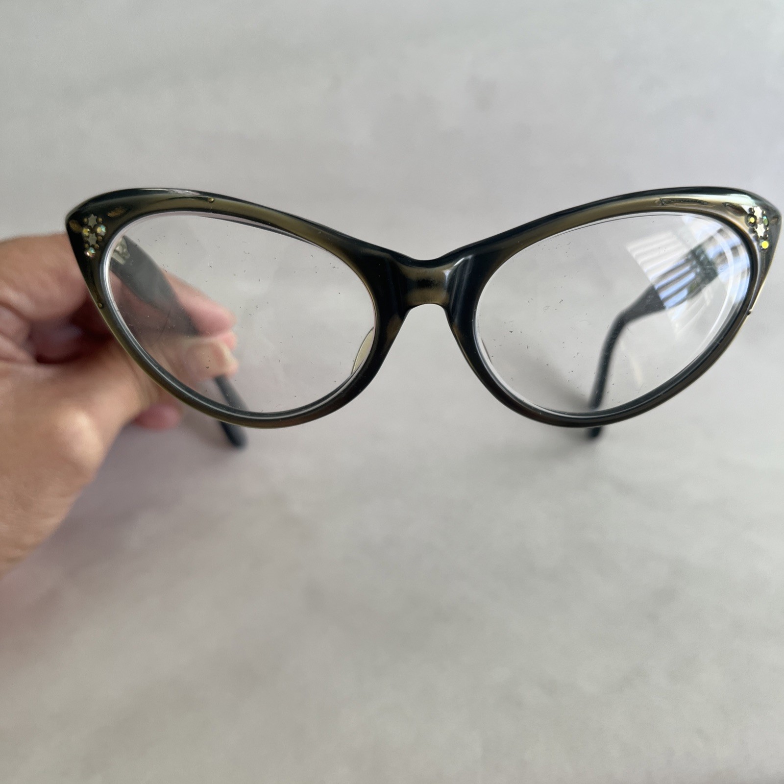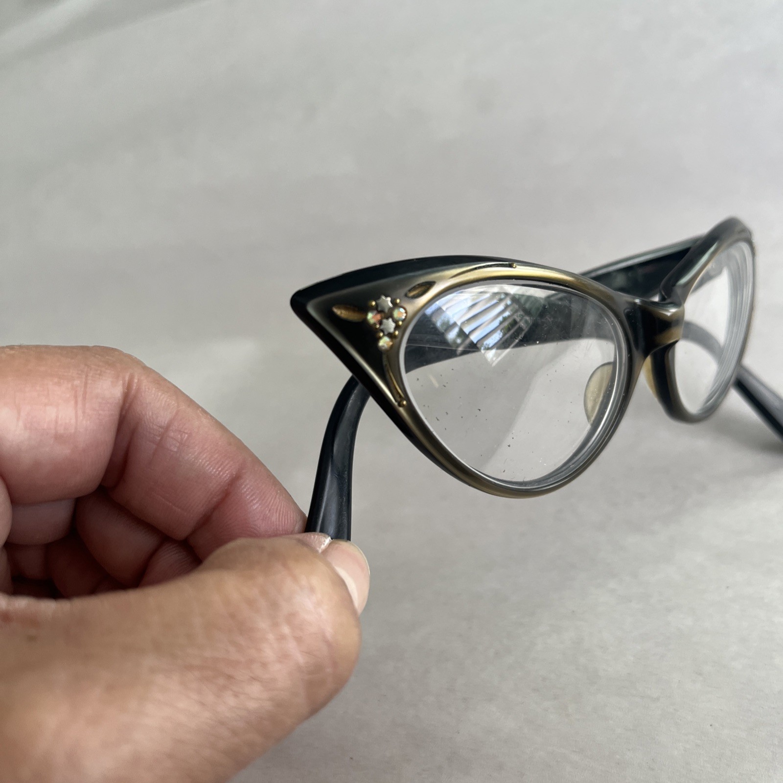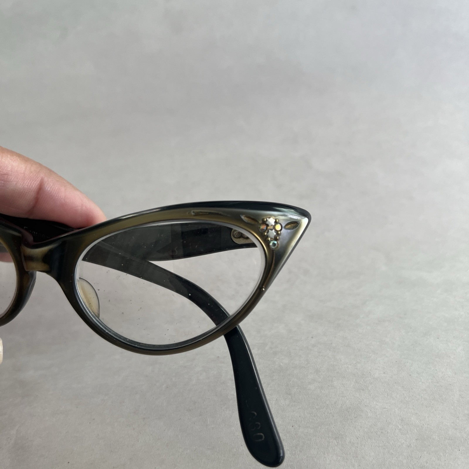 VTG Swank Opt680 CAT EYE Used Eyeglass Frames w/lenses Rhinestones Made inFrance