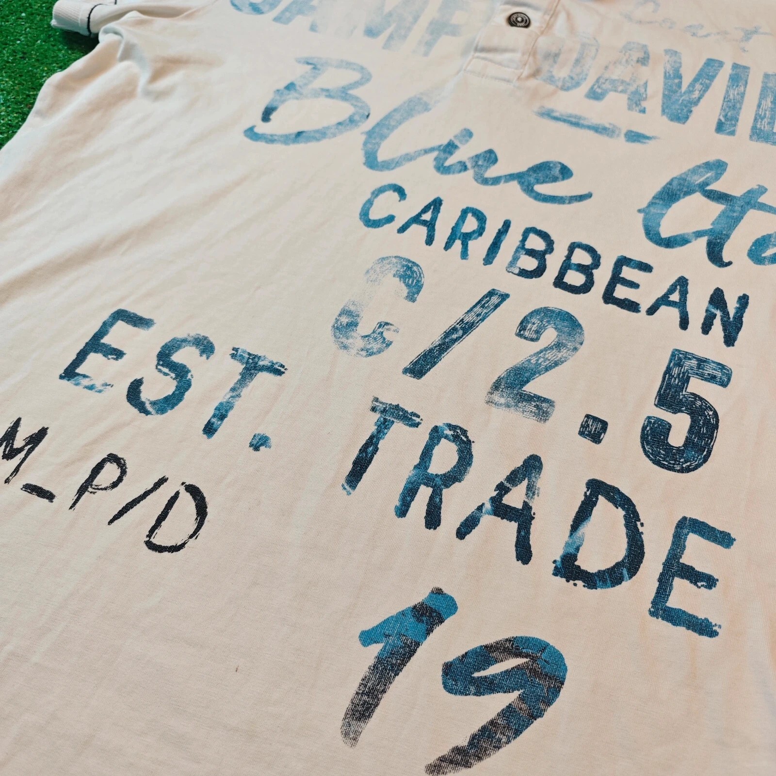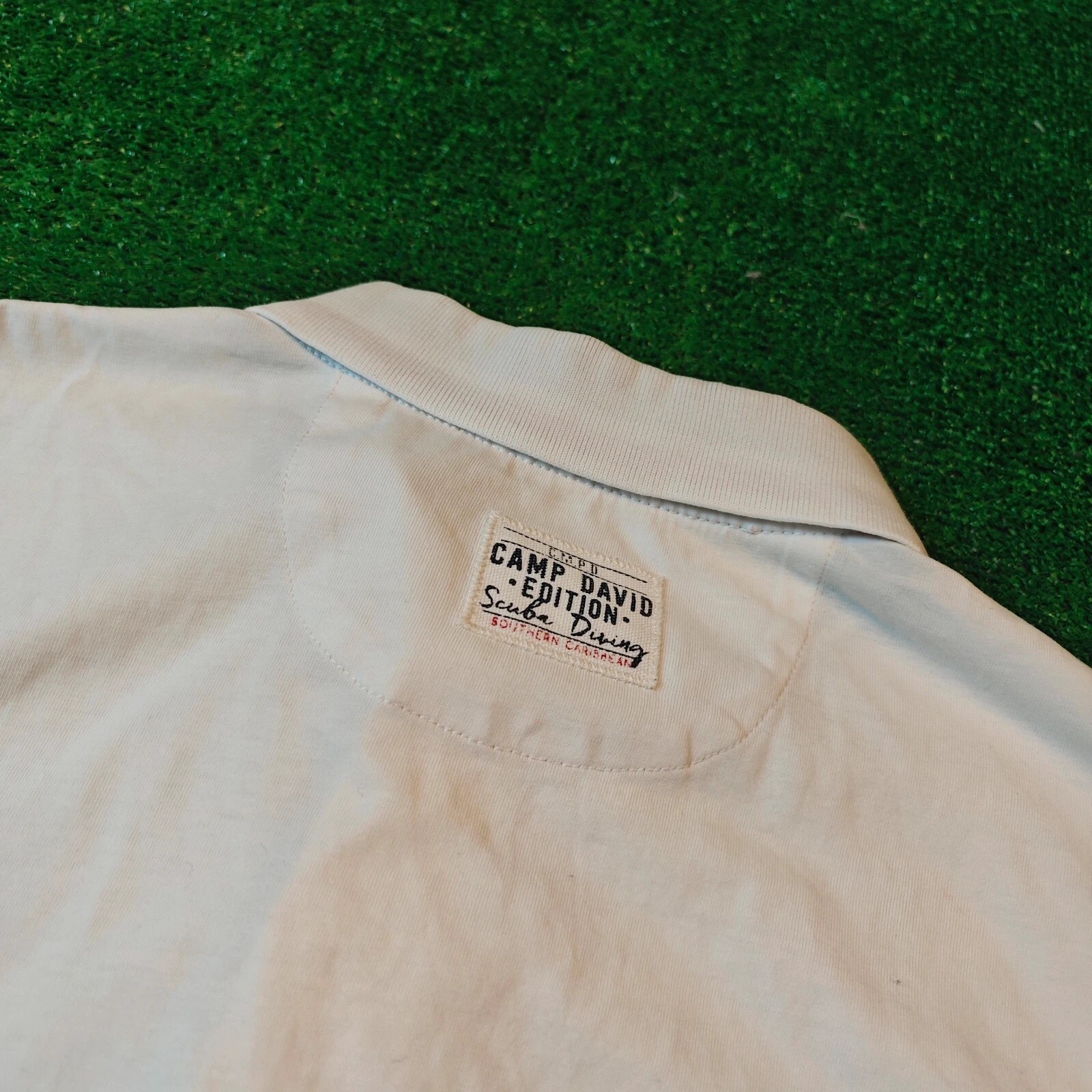 Camp David Polo Shirt Mens Large White Collared short sleeve spellout pullover