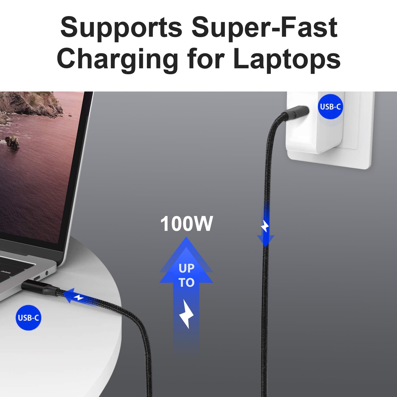 Elfesoul USB C to C Cable, 3.2 Gen 2 USB-C Cable 10ft - 4K UHD 10ft, Black