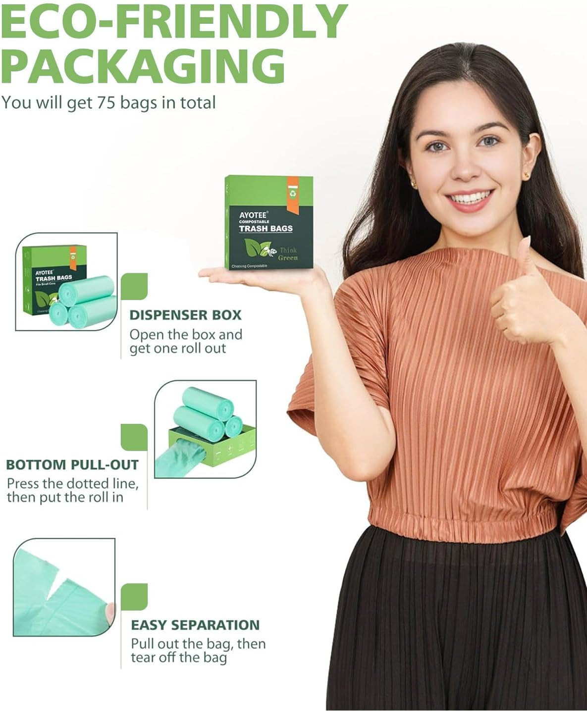 75 Counts Mini Garbage Bags, 1.2 Gallon Small Compostable Trash Bags, Small Gar