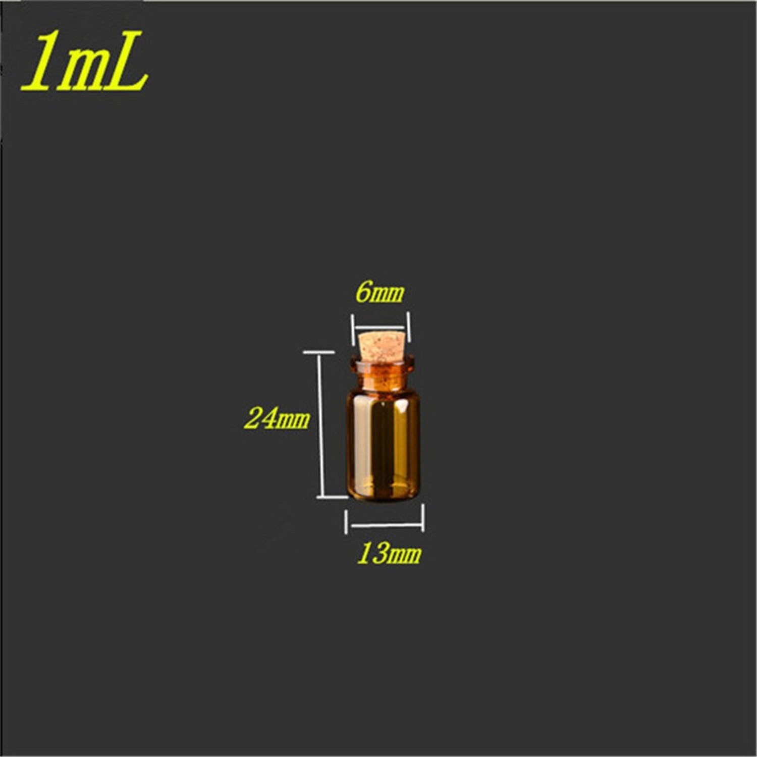 • 100pcs 1ml Mini Glass Bottles with Cork Amber Vials Jars Gift DIY Empty Littl...