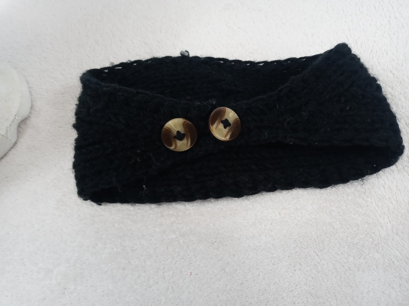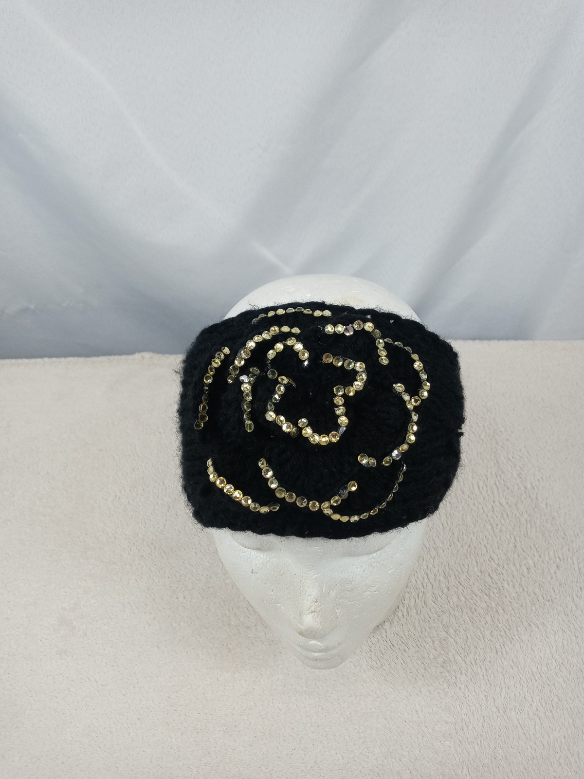 как выглядит Black Knit Headband Gold Sequin Flower Winter Ear Warmer Boho Style фото
