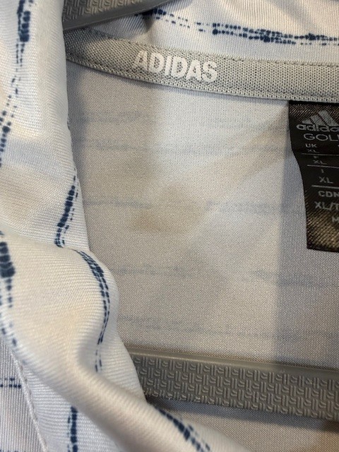 Adidas Golf polo mens size xl white w/ blue strips excellent condition