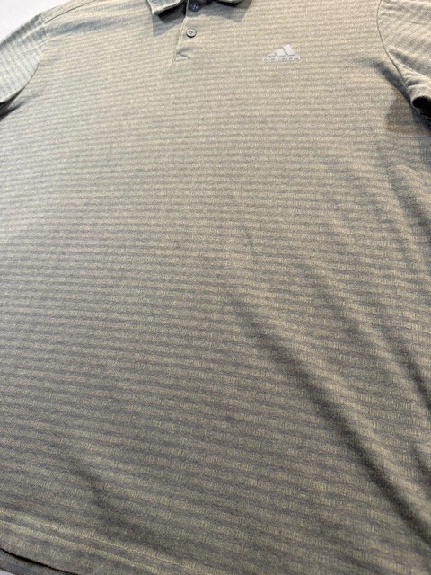как выглядит Adidas Golf Mens polo size XL green with stripes used condition фото