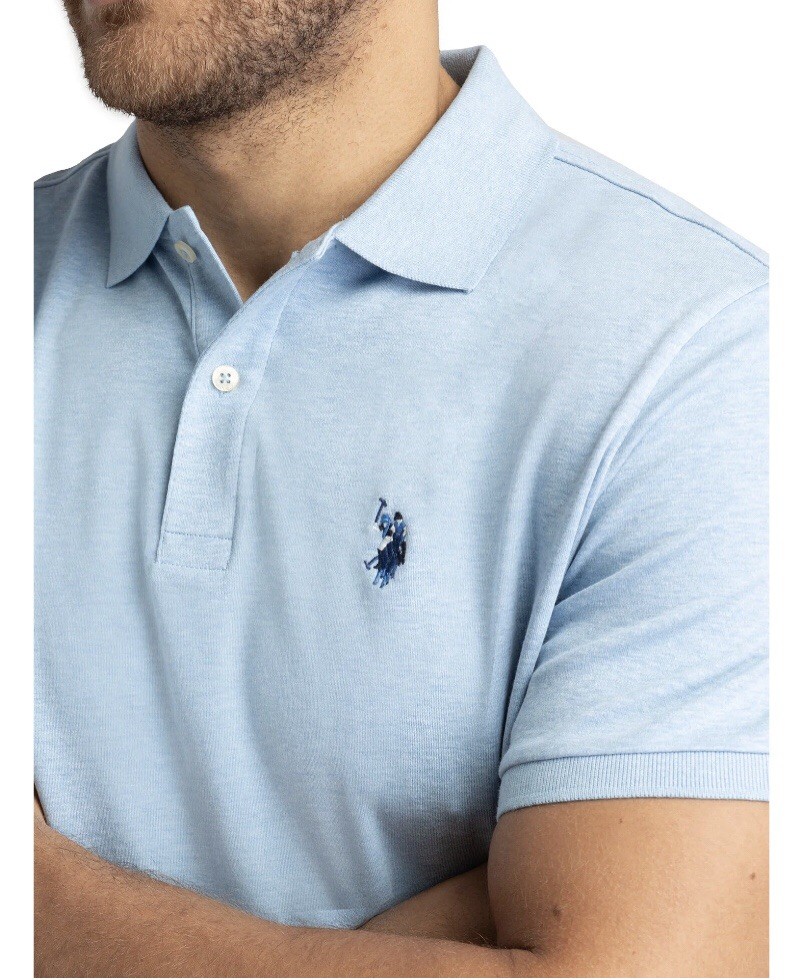 как выглядит US POLO ASSN. Mens Polo Shirt Size 2XL Blue Side Slits Logo Cotton Polyester New фото