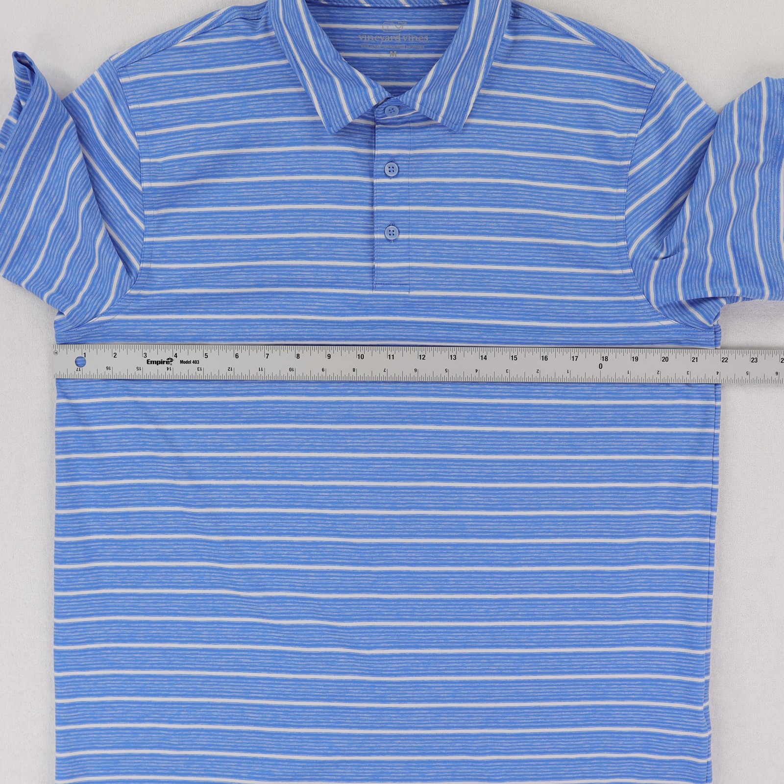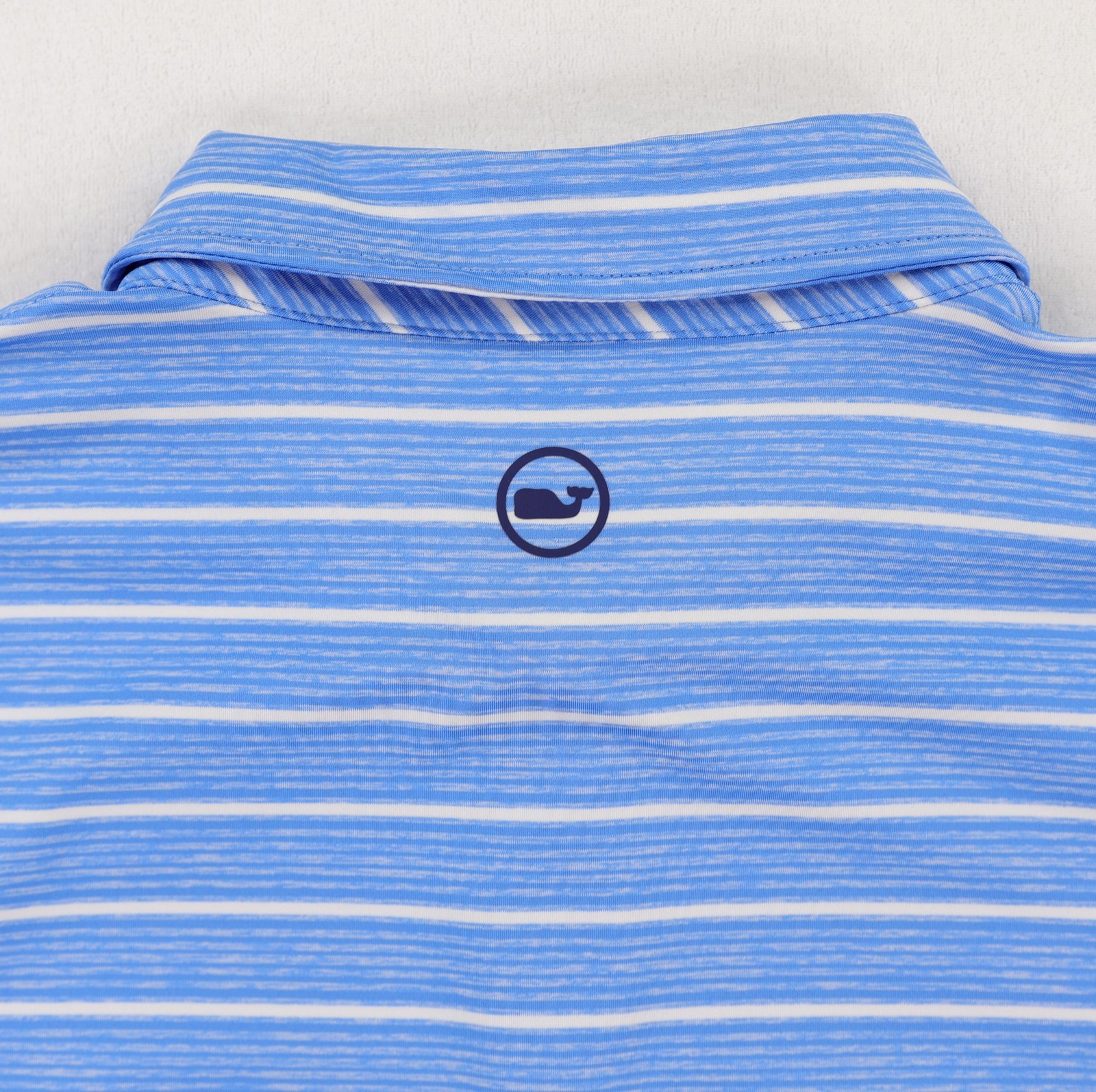 Vineyard Vines Polo Shirt Mens Medium Blue Stripe Performance Golf Stretch